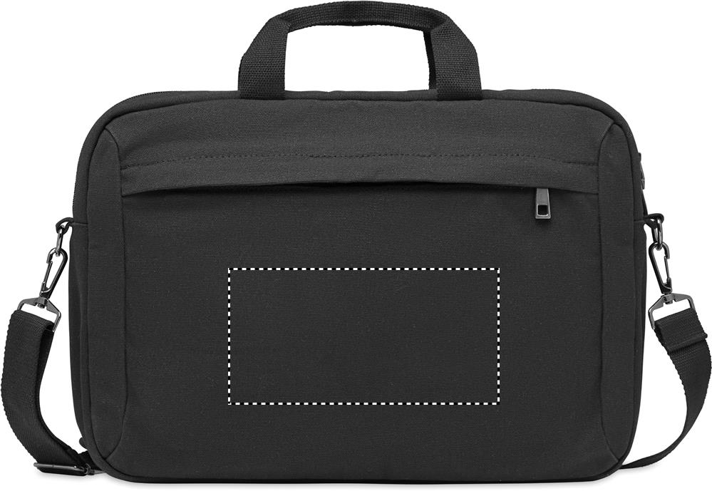 Tietokonelaukku 340 gr/m² pestyä canvaskangasta . Pehmustettu irrotettava ja säädettävä olkahihna. Selkäpuolella hihna, josta laukun saa kätevästi vetolaukun kahvaan kiinni.