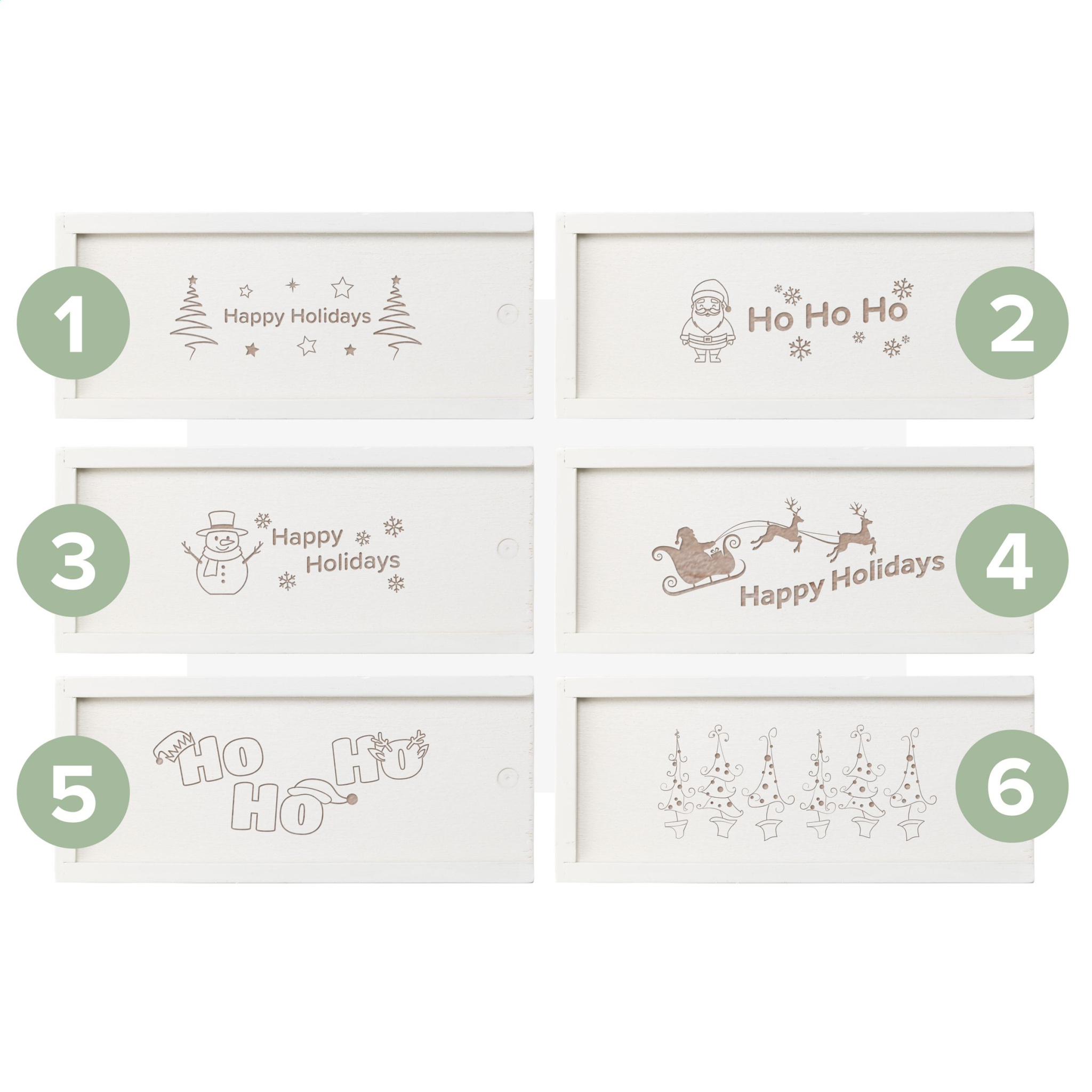 Puinen pinoamispeli (48 palikkaa) tavallisella joulukuviolla. Tornin mitat 16,5 x 6 x 6 cm. Mukana valkoinen puinen laatikko, jossa on liukuva aukko säilytystä varten. Sisältää ohjeet. - Tämä tuote on painettu tavallisella joulukuviolla. Valittavana 6 erilaista mallia kuvien mukaisesti. Suunnittelua ei ole mahdollista muokata. Jokainen tuote toimitetaan erillisessä ruskeassa pahvilaatikossa.