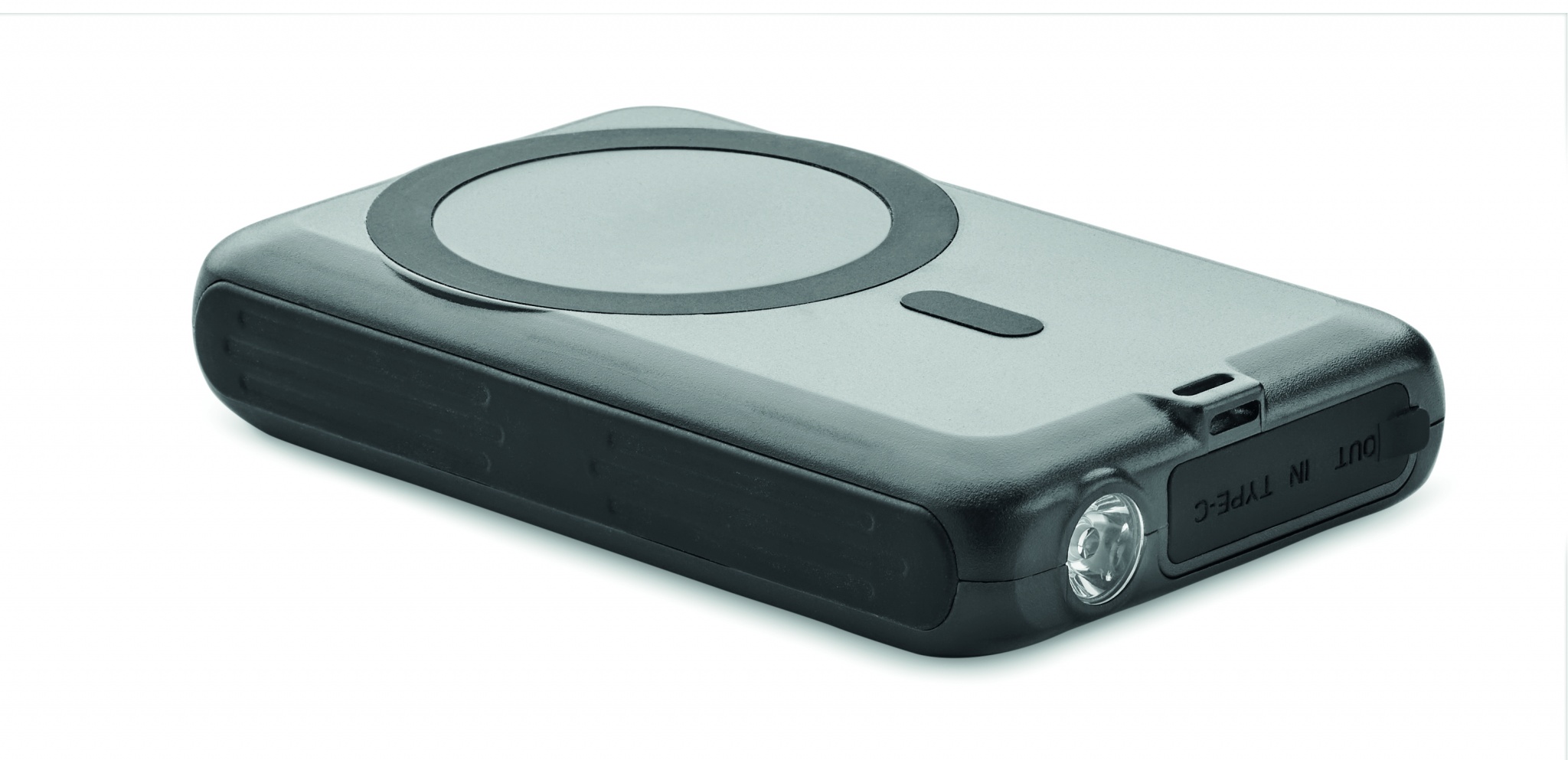 Magneettinen langaton laturi (5W) Virtapankki 5000 mAh ABS-materiaalista aurinkopaneelilla. Lähtö: DC 5V/2A. Yhteensopiva iPhone® 12:n ja uudempien kanssa. Mukana ylimääräinen magneettinen metallirengas, joka tukee muiden ei-magneettisten langattomasti ladattavien puhelimien lataamista.