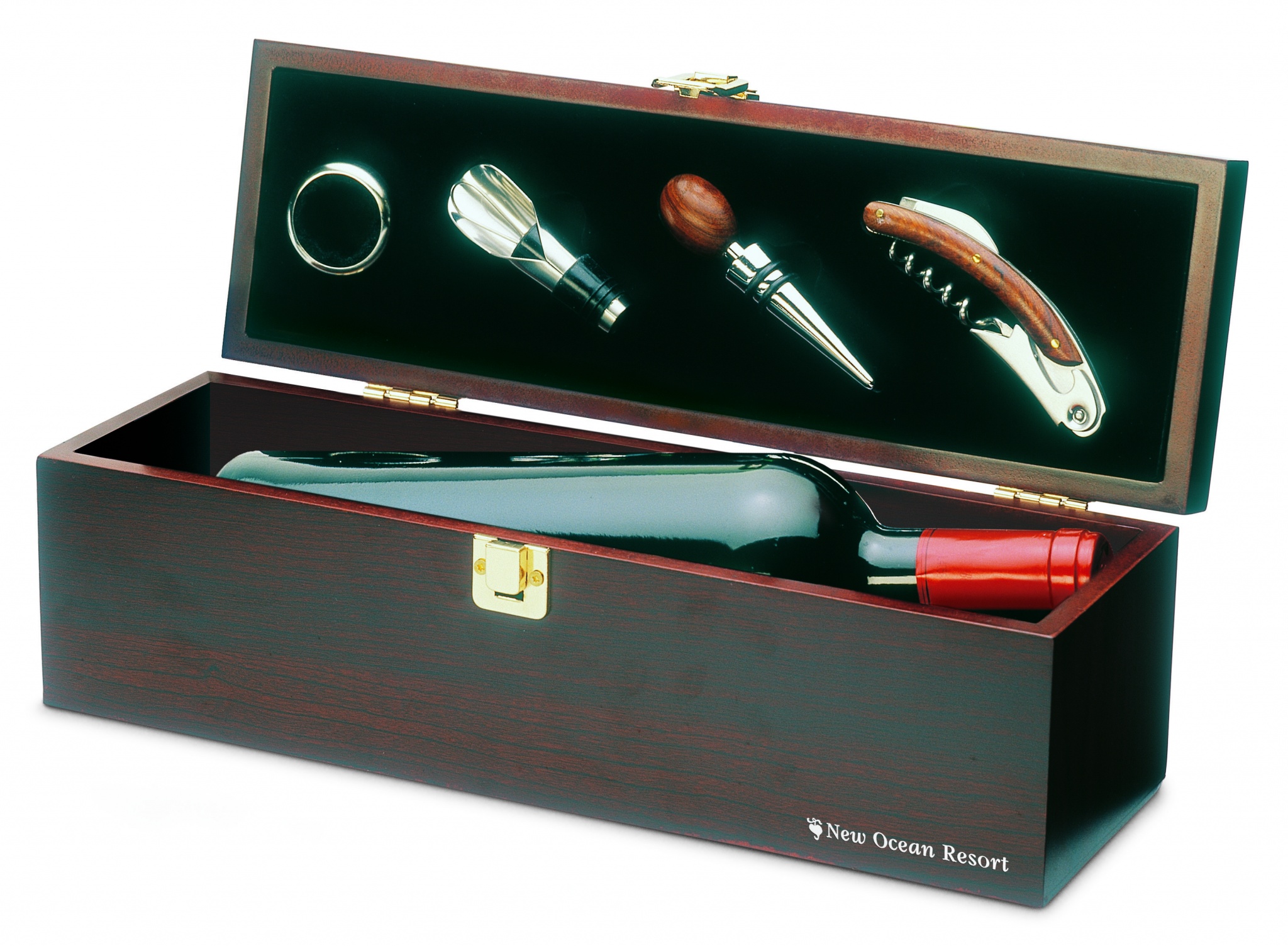 Viinisetti puisessa lahjalaatikossa, laatikossa on tilaa yhdelle viinipullolle. Sisältää tippa kauluksen, kaatonokan, viinikorkki ja korkkiruuvin. Viinipullo ei sisälly hintaan.