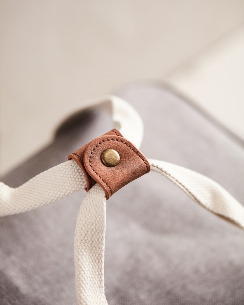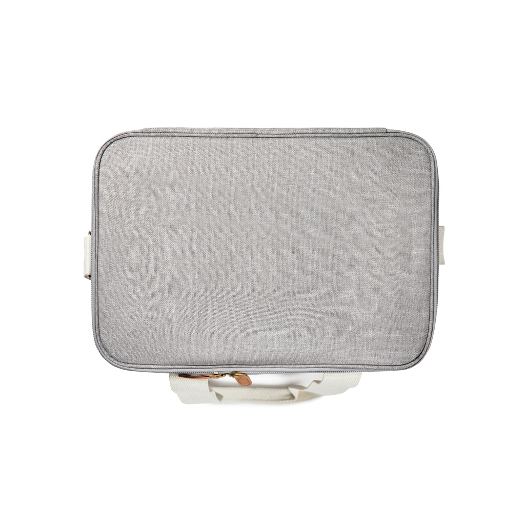Kylmäkori, jossa sävy-sävyyn liukuvärjätyt yksityiskohdat tekonahkaa ja puuvillaa. Tyylikkäisiin piknikhetkiin. Ulkotasku tarvikkeille. Pitää hyvin kylmänä paksun PEVA-eristyksen ansiosta. Pinta ja sisus on helppo pitää puhtaana. Säädettävä olkahihna ja kantokahvat.