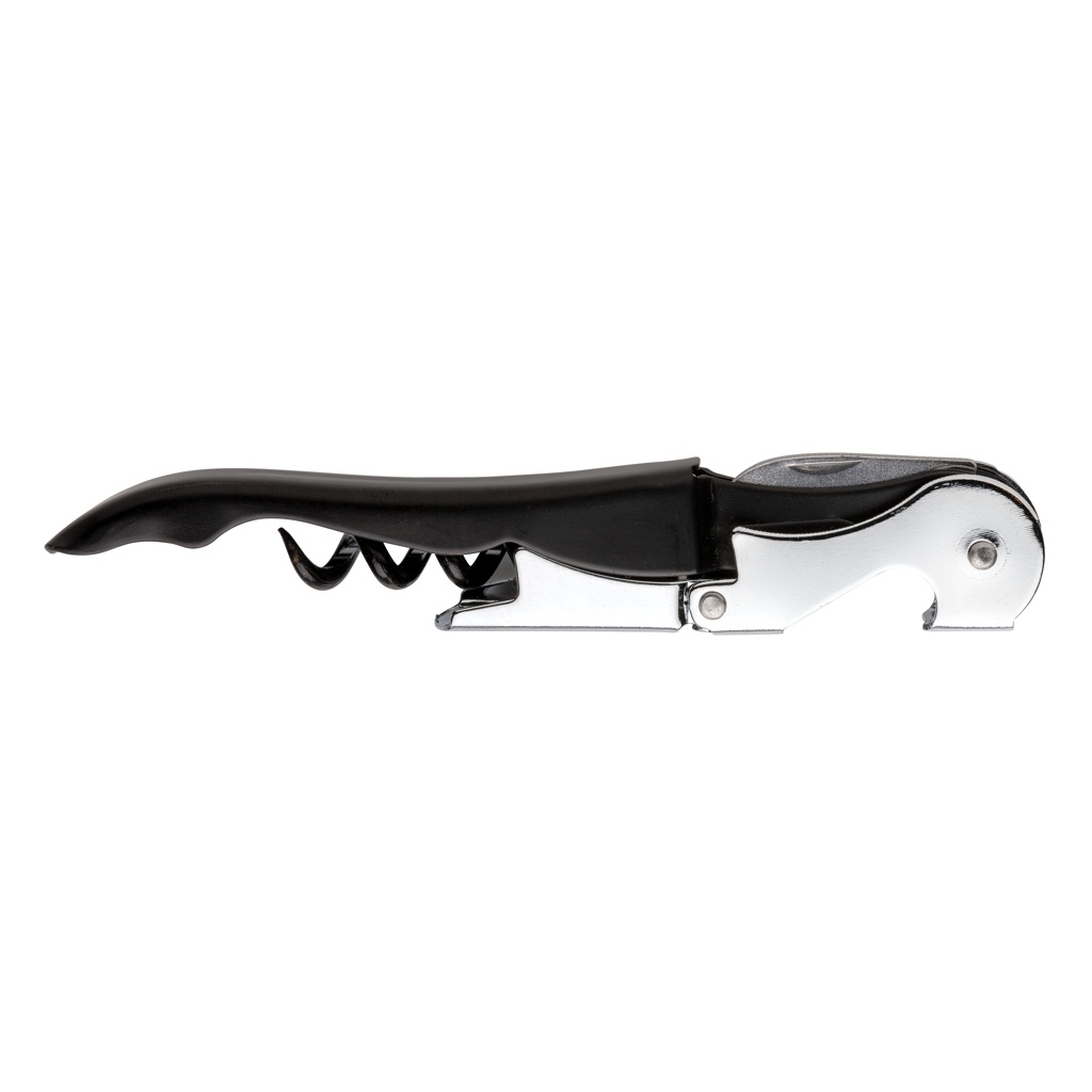 Tässä tarjoilijan korkkiruuvissa klassisella muotoilulla on folioleikkurin terä, kaksivaiheinen korkkinostin ja pullonavaaja. Pakattu lahjapakkaukseen.