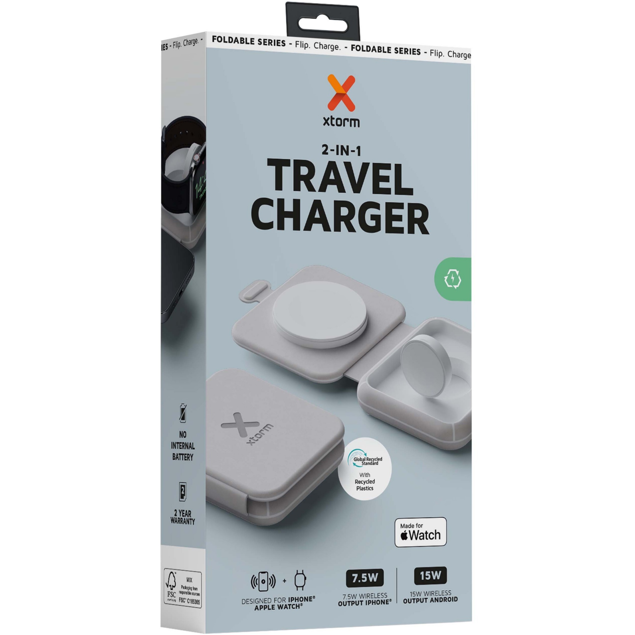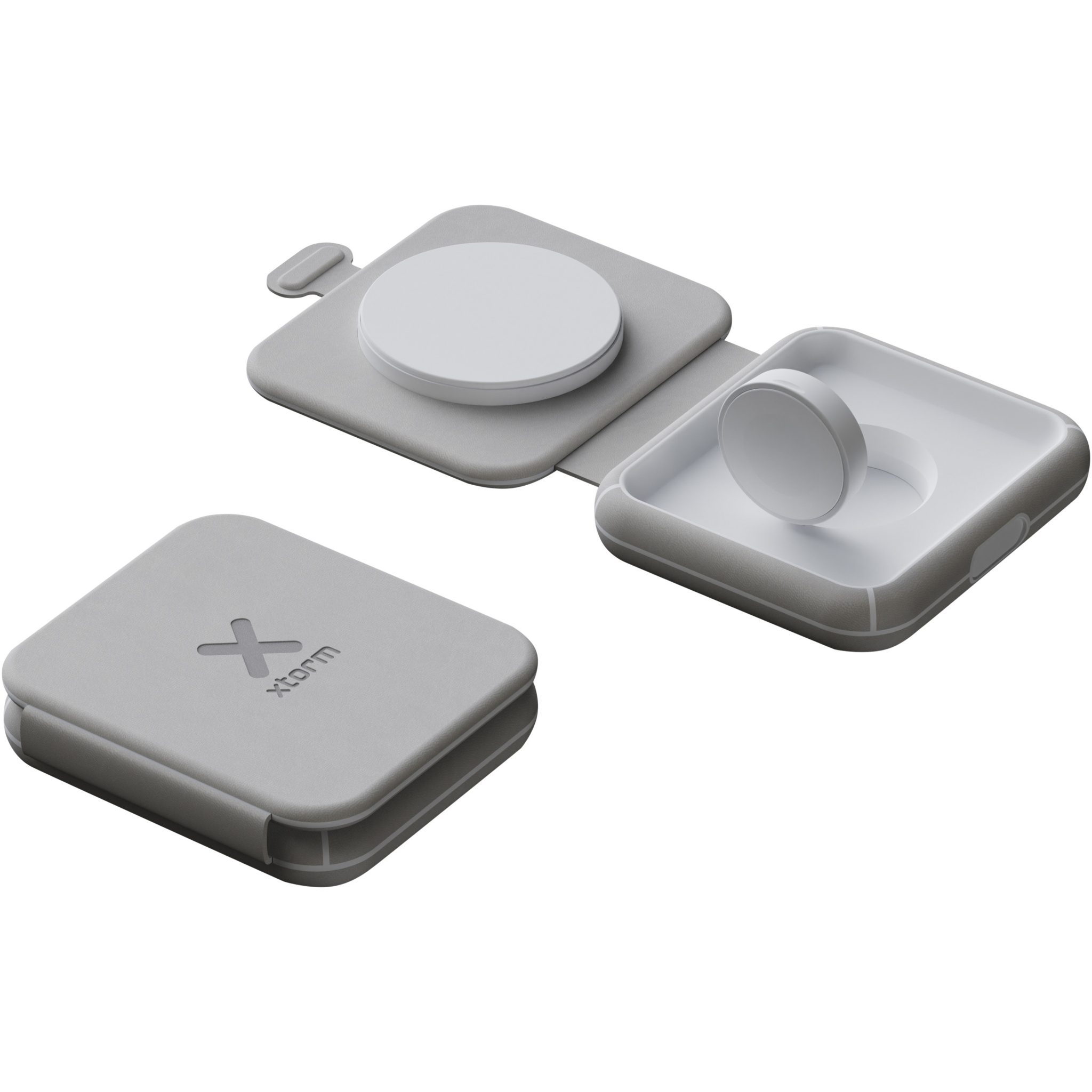 Tällä kompaktilla, taitettavalla ja tyylikkäällä langattomalla magneettisella matkalaturilla voit ladata iPhonen ja Apple Watchin samanaikaisesti! Ihanteellinen lataamiseen kotona, toimistossa tai yön yli kestävällä matkalla. Sisältää magneettisen langattoman latausalustan (15 W) ja iWatch-laturin (3 W). Tulo: USB-C 27W:n virransyöttö. Mukana 1 metrin USB-C-virransyöttökaapeli ja käyttöohje.