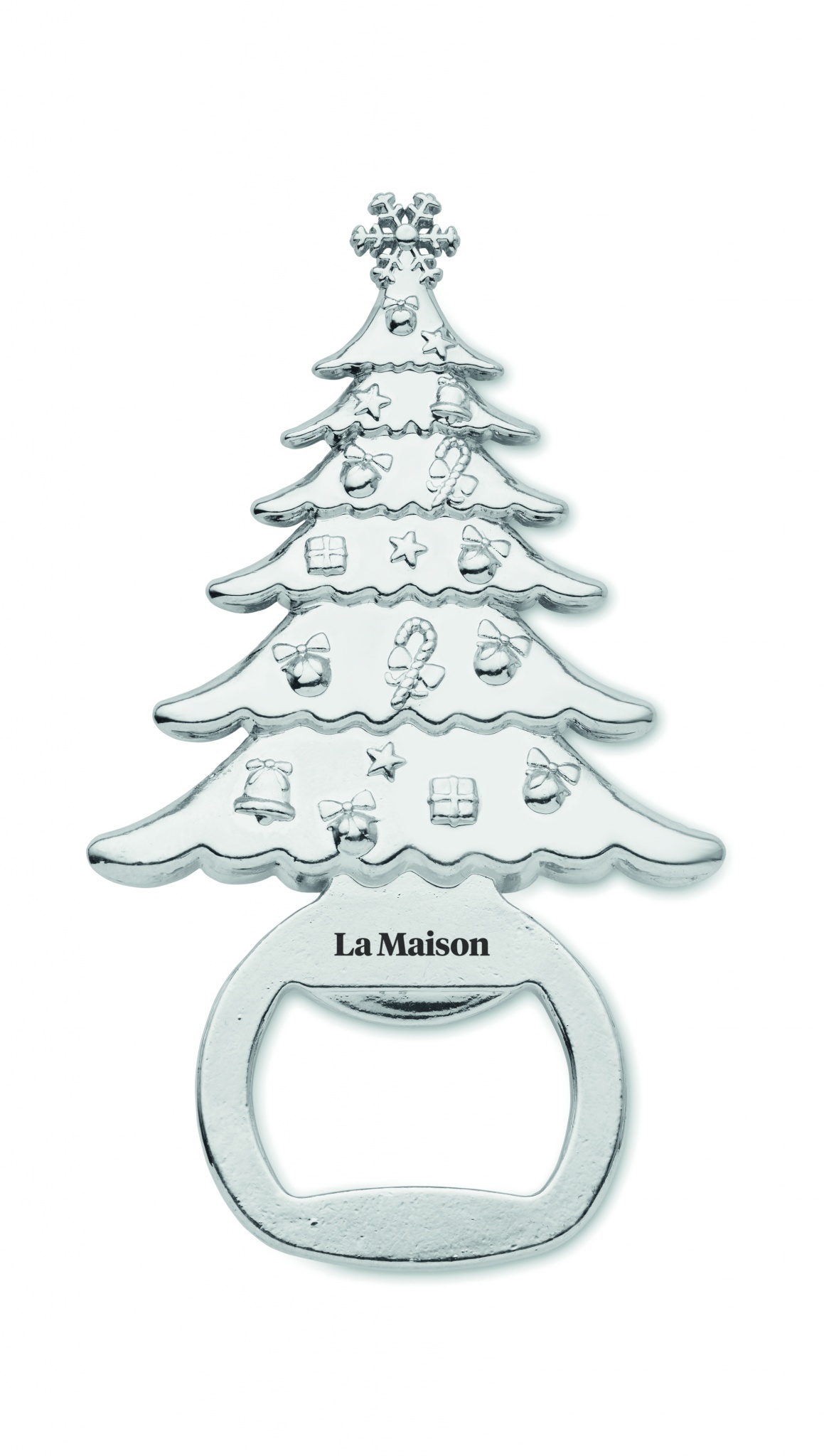 Cinko lydinio kalėdinio dizaino butelių atidarytuvas.