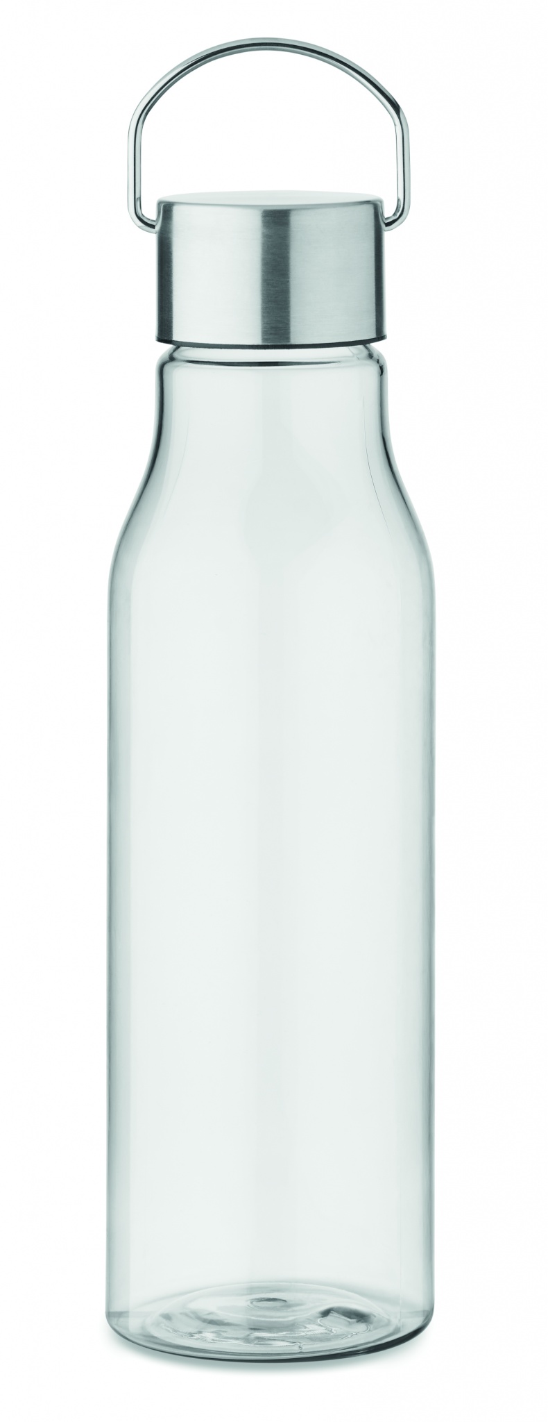 Geriamasis butelis iš RPET, kuriame nėra BPA, ir nerūdijančio plieno dangtelis su dangčio rankena. Nesandarus. Talpa: 600 ml.