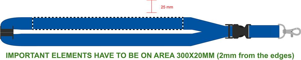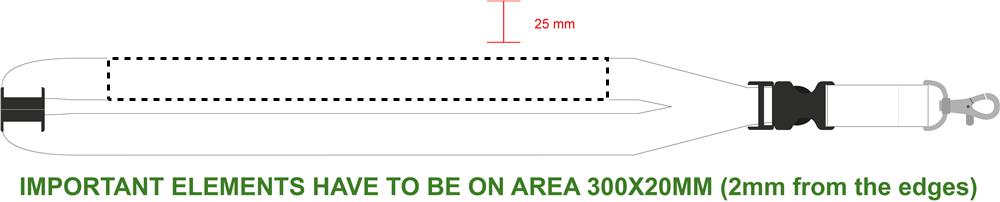 Virvelė su metaliniu kabliu, nuimama sagtimi ir apsauginiu atsegimu. 25 mm pločio. Sublimacinis spaudinys galimas tik ant balto gaminio.