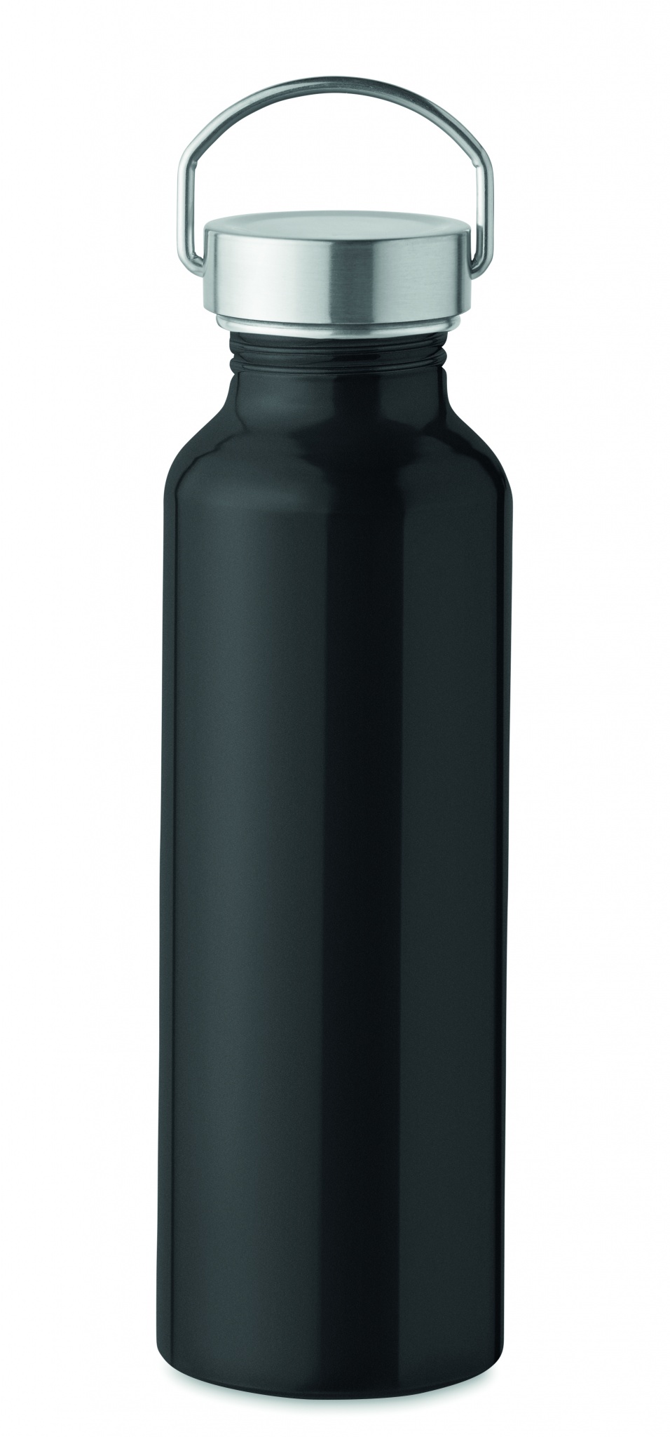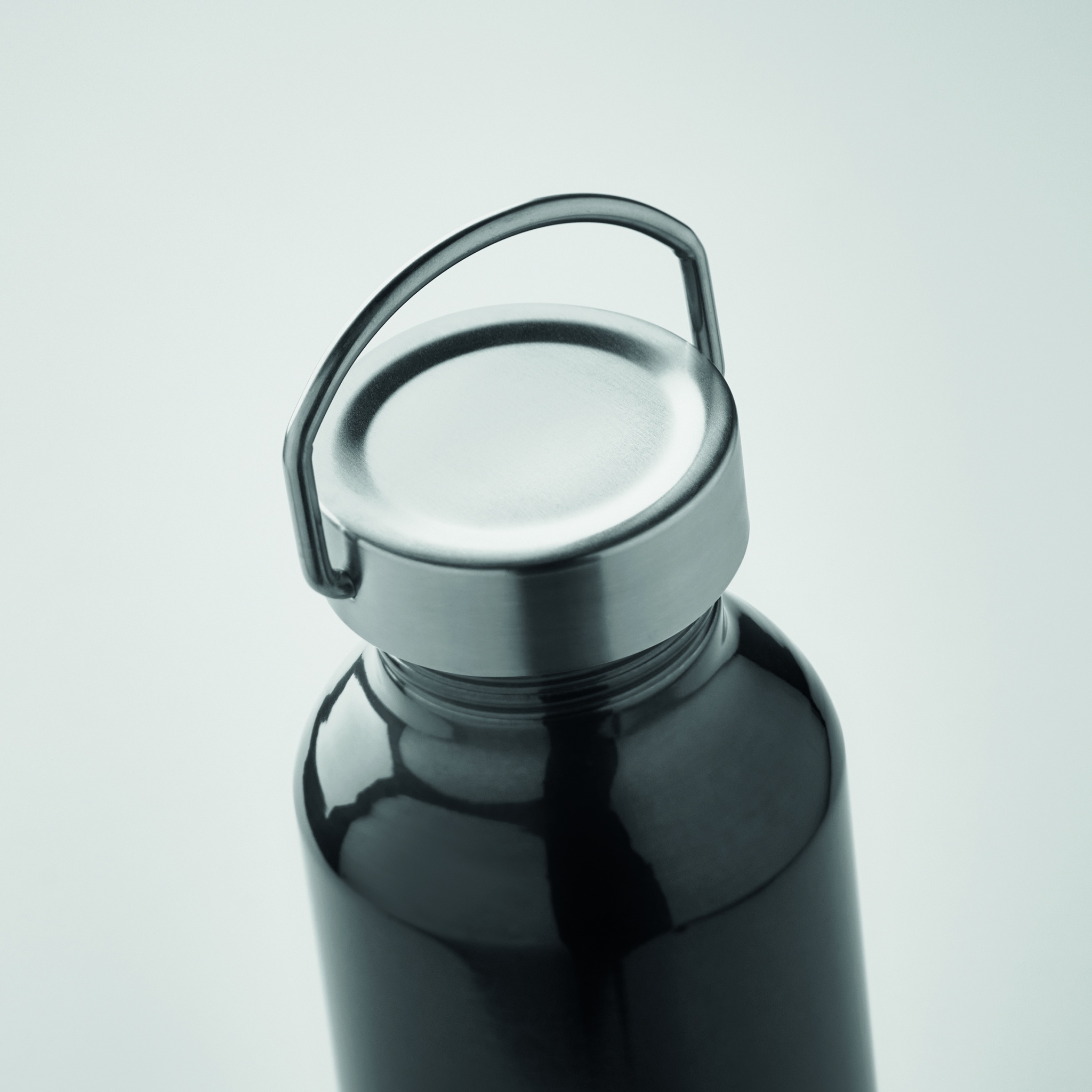 500 ml pudele no pārstrādāta alumīnija ar nerūsējošā tērauda rokturi, Melns