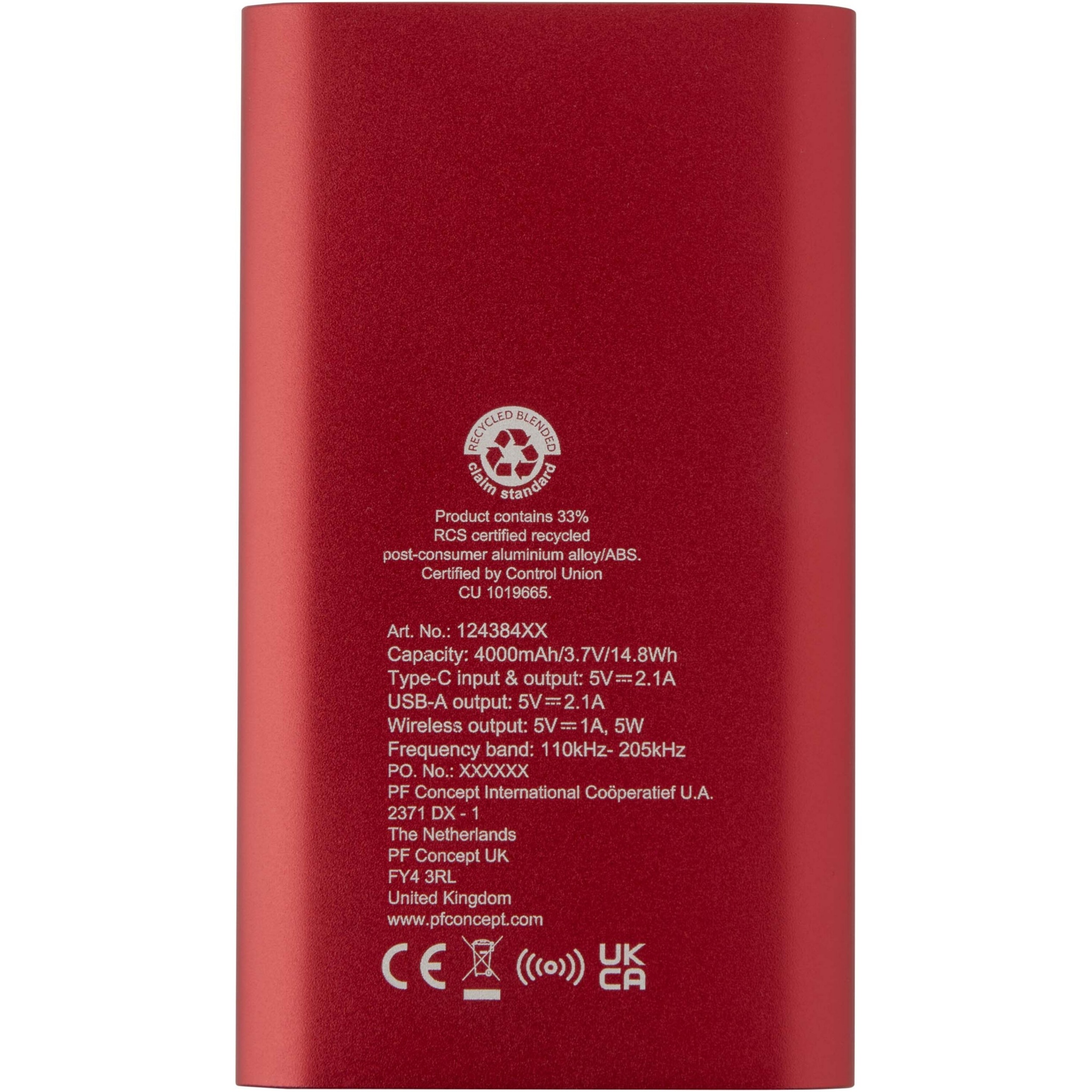 Barošanas banka ar C tipa ieejas/izejas portu un USB-A portu, kas nozīmē, ka vienlaikus var uzlādēt 2 ierīces. Tā atbalsta arī 5 W bezvadu uzlādi visām Qi iespējotajām ierīcēm. Strāvas bankā ir 4000 mAh litija polimēru akumulators, kas nodrošina maksimālo izejas jaudu. 10 W. Šī jaudas banka ir izgatavota no 28% RCS sertificētas pārstrādātas plastmasas. Tiek piegādāts ar TPE Type-C uz USB-A uzlādes kabeli.