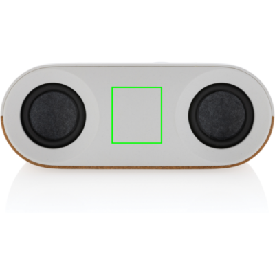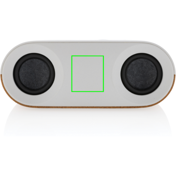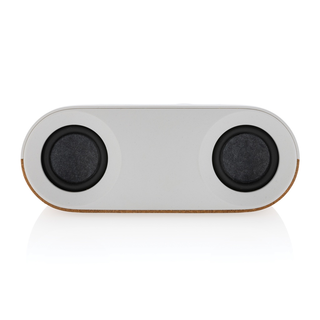 10 W bezvadu skaļrunis, kas izgatavots no FSC® 100% korķa un RCS (Recycled Claim Standard) sertificēta pārstrādāta ABS. Kopējais pārstrādātais saturs: 25% no kopējā preces svara. RCS sertifikācija nodrošina pilnībā sertificētu pārstrādāto materiālu piegādes ķēdi. Skaļrunis ir aprīkots ar 1200 mAh akumulatoru, lai nodrošinātu līdz pat 10 stundām atskaņošanas laiku, un BT5.3 vienmērīgam savienojumam ar skaidru skaņu. Savienojuma diapazons līdz 10 metriem. Ar mikrofonu un paņemšanas funkciju, lai atbildētu uz zvaniem. Iepakots FSC mix FSC® kastē. Ietver RCS sertificētu pārstrādātu TPE uzlādes kabeli. Prece un aksesuāri 100% bez PVC.