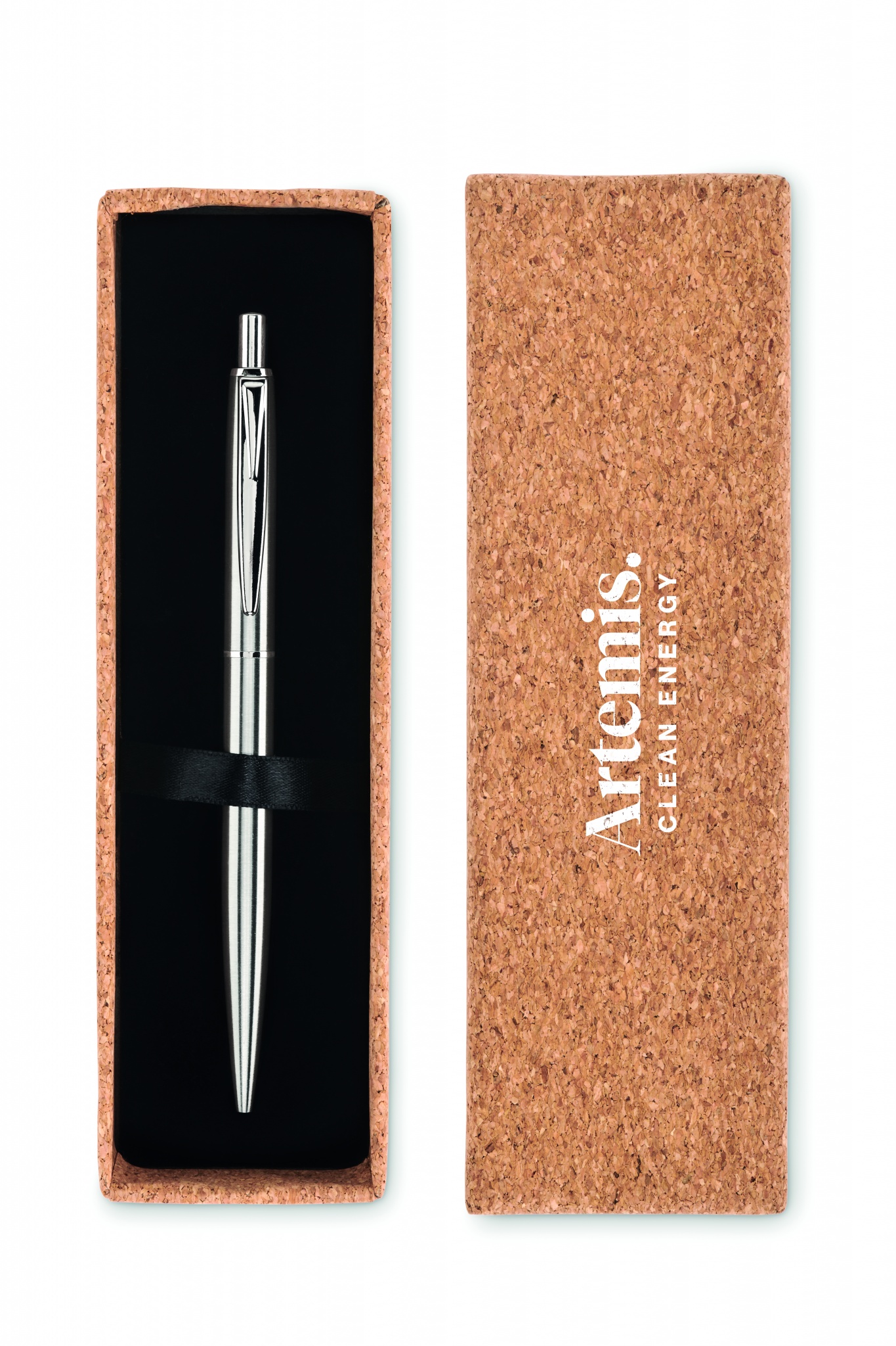 Spiedpogas lodīšu pildspalva ar pārstrādāta nerūsējošā tērauda mucu. Prezentēts atbilstošā korķa kastē. Zilā tinte. Korķis ir 100% dabīgs materiāls. Tā strukturālā rakstura un virsmas porainības dēļ gala izdrukas rezultātam uz vienu vienumu var būt novirzes.