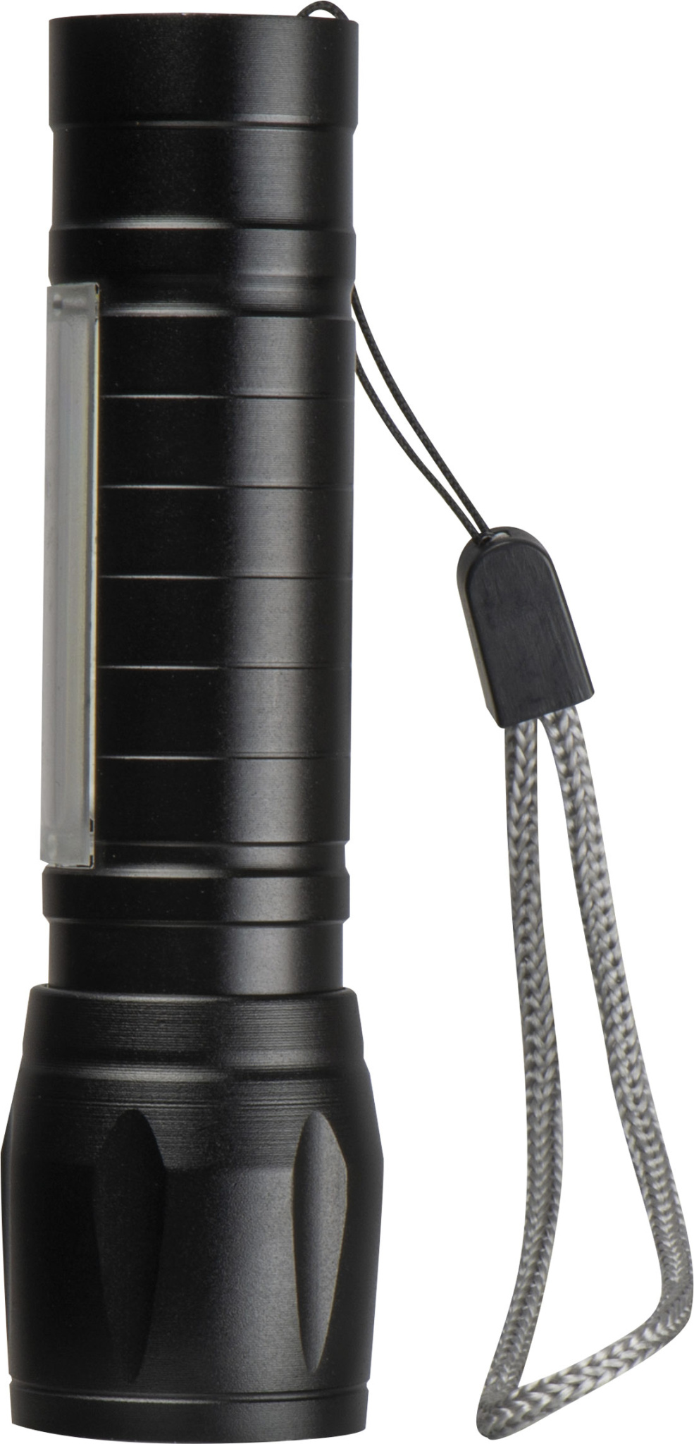 Uzlādējams alumīnija kabatas lukturītis (400 mAh) melnā kastē, ieskaitot USB-C uzlādes kabeli. Lukturam ir COB gaisma ar regulējamu staru un COB gaisma uz vārpstas. Jūsu logotips tiks uzdrukāts kastes vāka centrā.