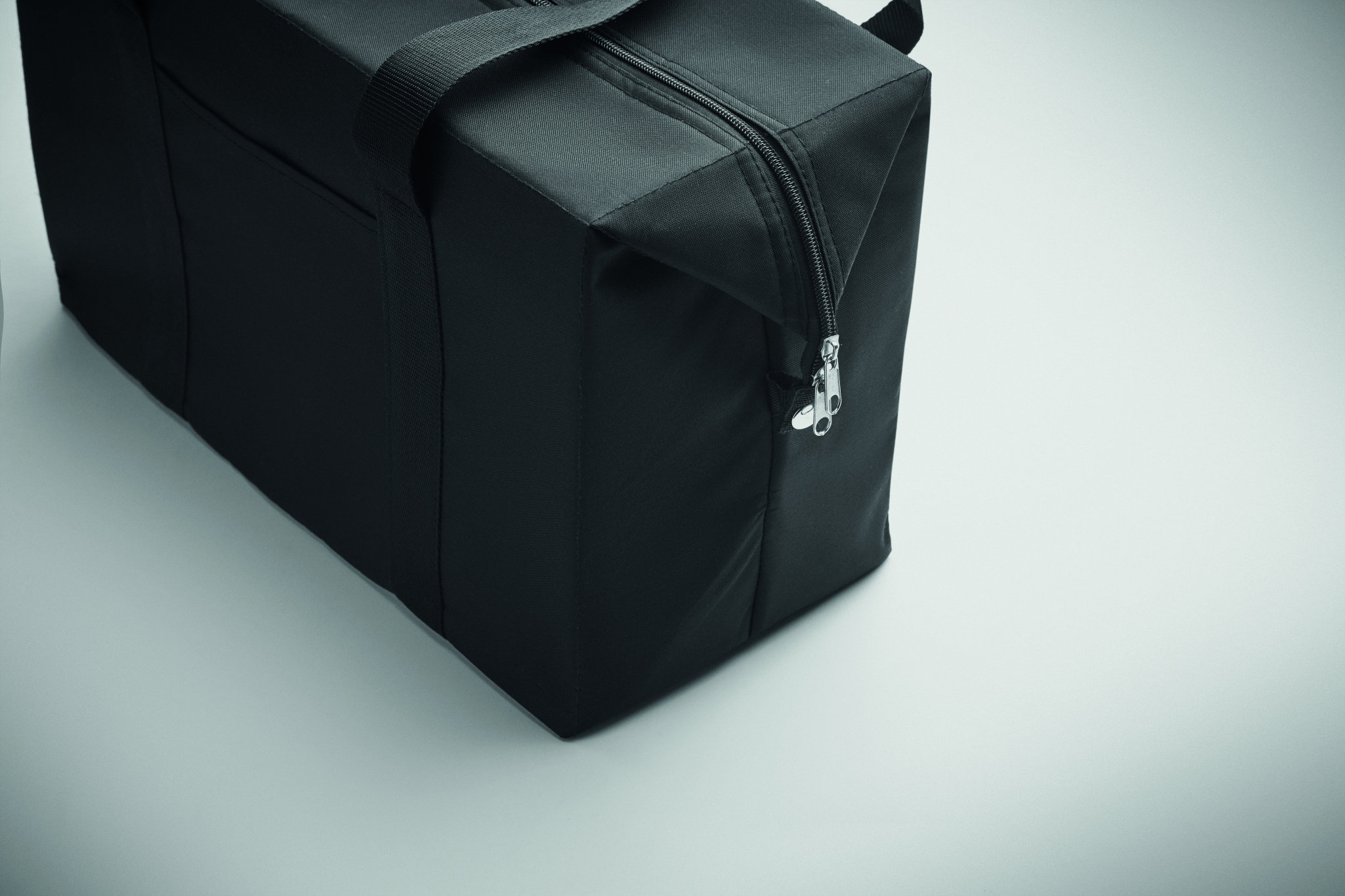 Cooler bag in RPET 300D cationic polyester. Isolation material: 3mm foam laminated with aluminium foil. Capacity 3L.