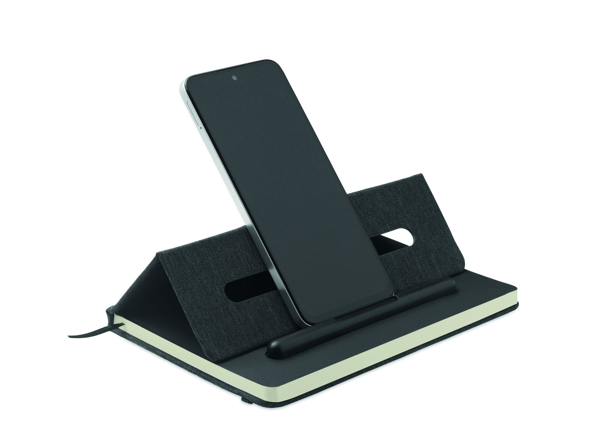 Лого трейд бизнес-подарки фото: A5 notebook with phone holder