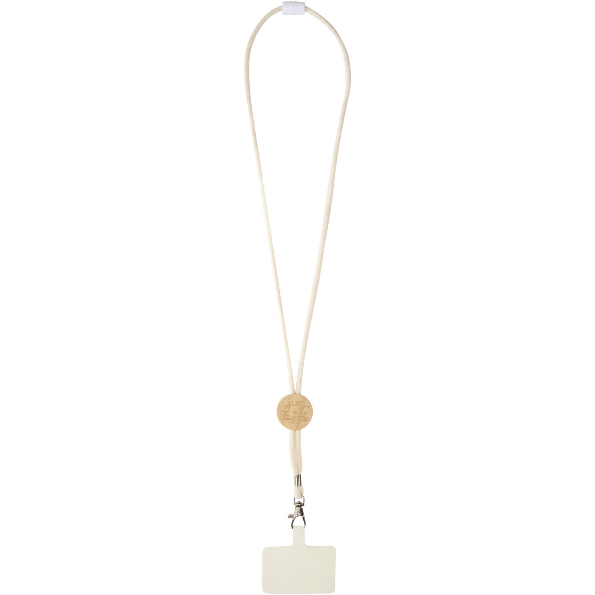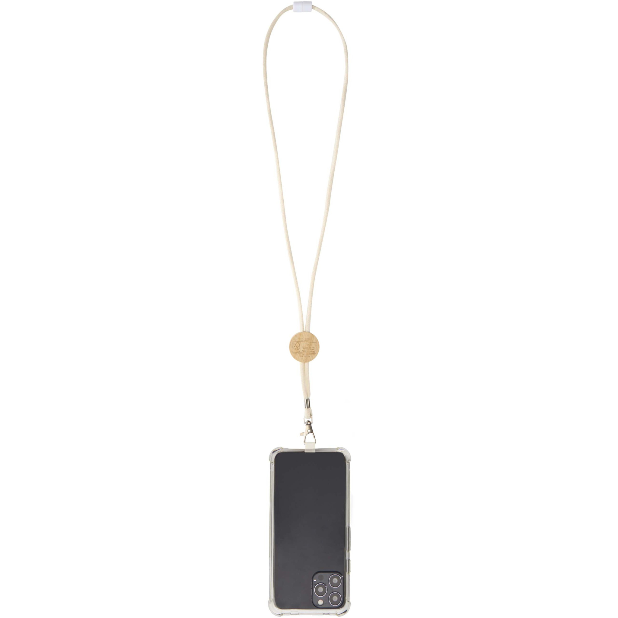 Носите свой телефон стильно с помощью шнурка для смартфона Adhab. Центральная часть изготовлена из бамбука, полученного ответственным образом, что добавляет дизайну природный акцент. Этот элемент не только улучшает внешний вид, но и является идеальной площадкой для брендинга. Этот практичный и стильный шнурок идеально подходит для повседневного использования или мероприятий.