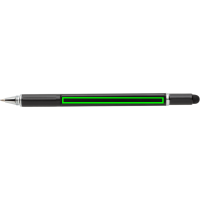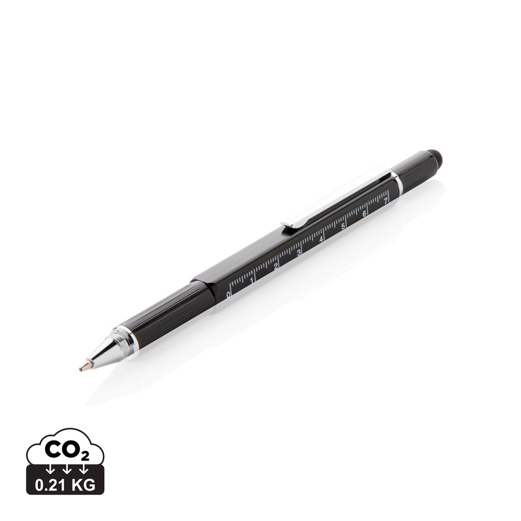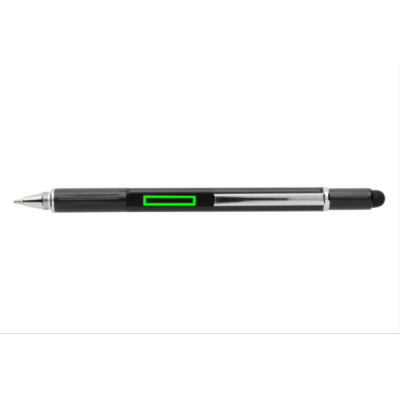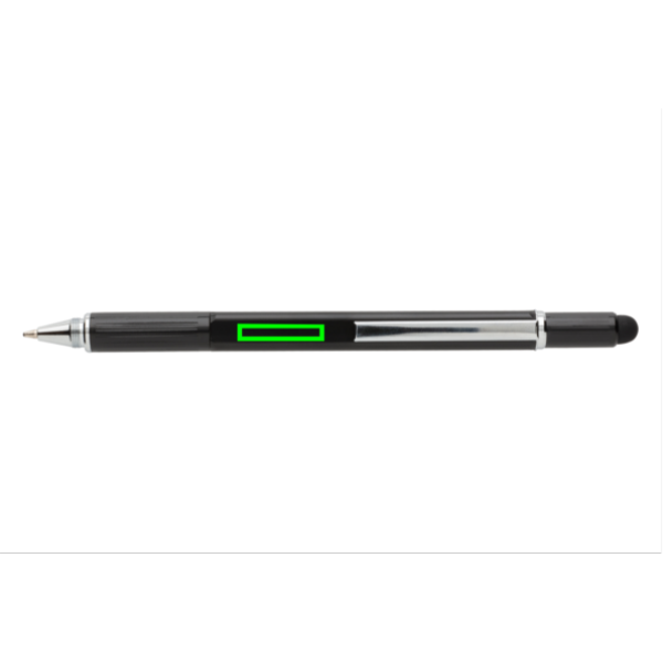 Многофункциональная ручка с линейкой (7 см), уровнем, отверткой, стилусом и шариковой ручкой с синими чернилами (срок службы до 400 мкм). Изготовлена из высококачественной латуни с алюминиевым зажимом.