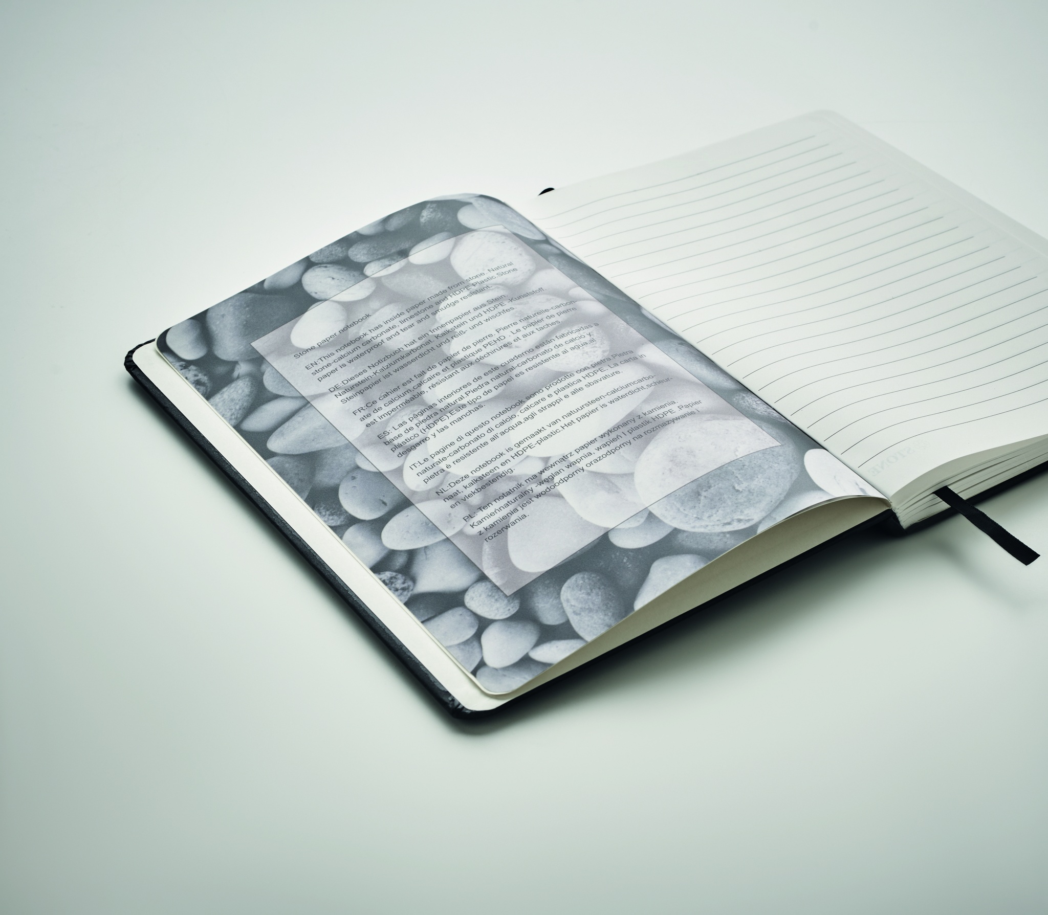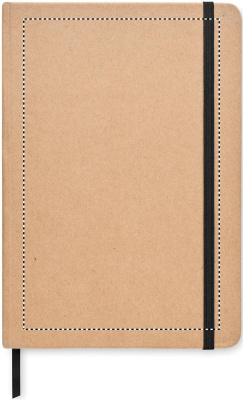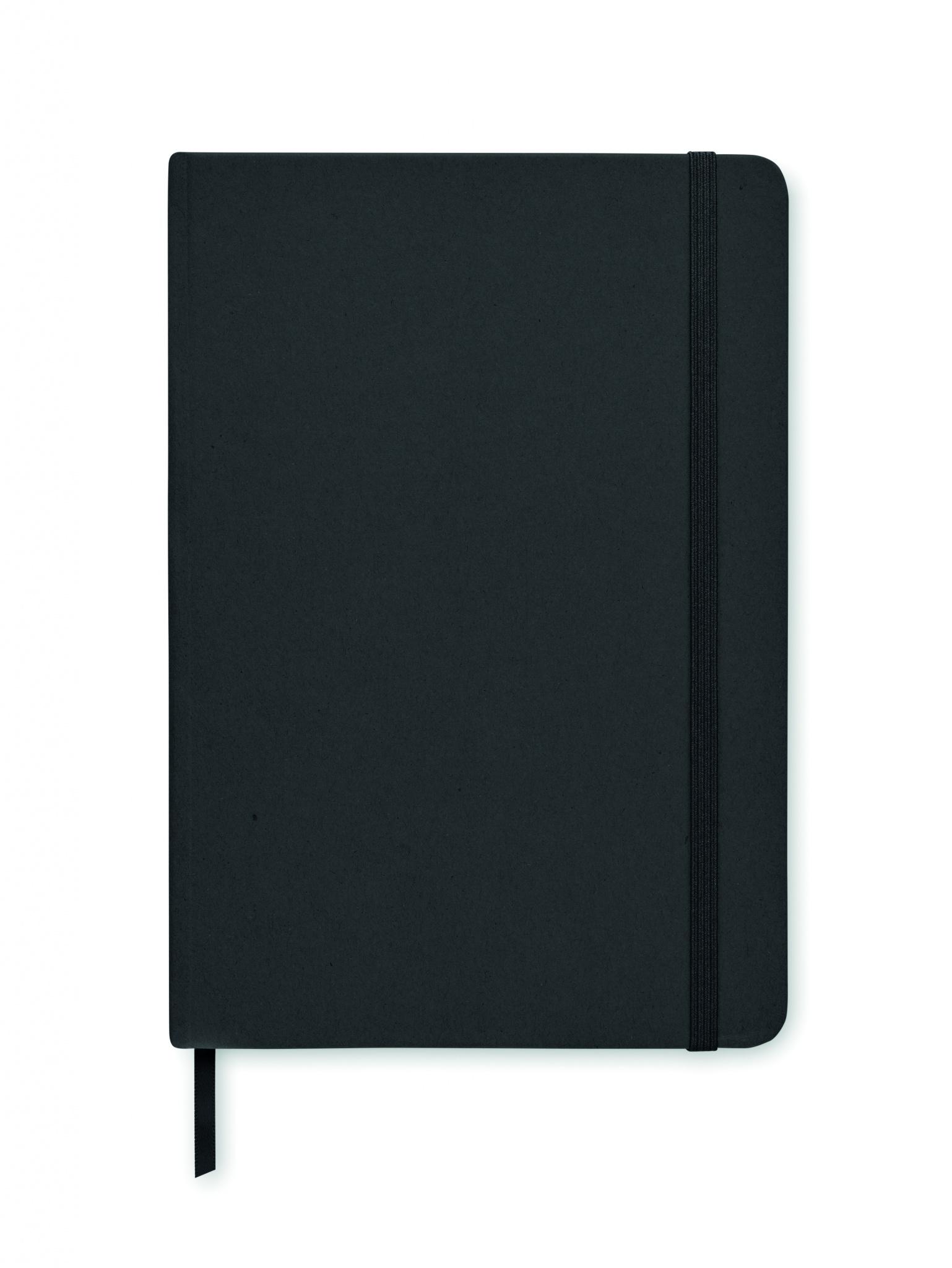 Блокнот формата A5 на резинке в твердой обложке из переработанного картона. В переплете. 160 линованных страниц из каменной бумаги (80 листов). Закладка ленточка.