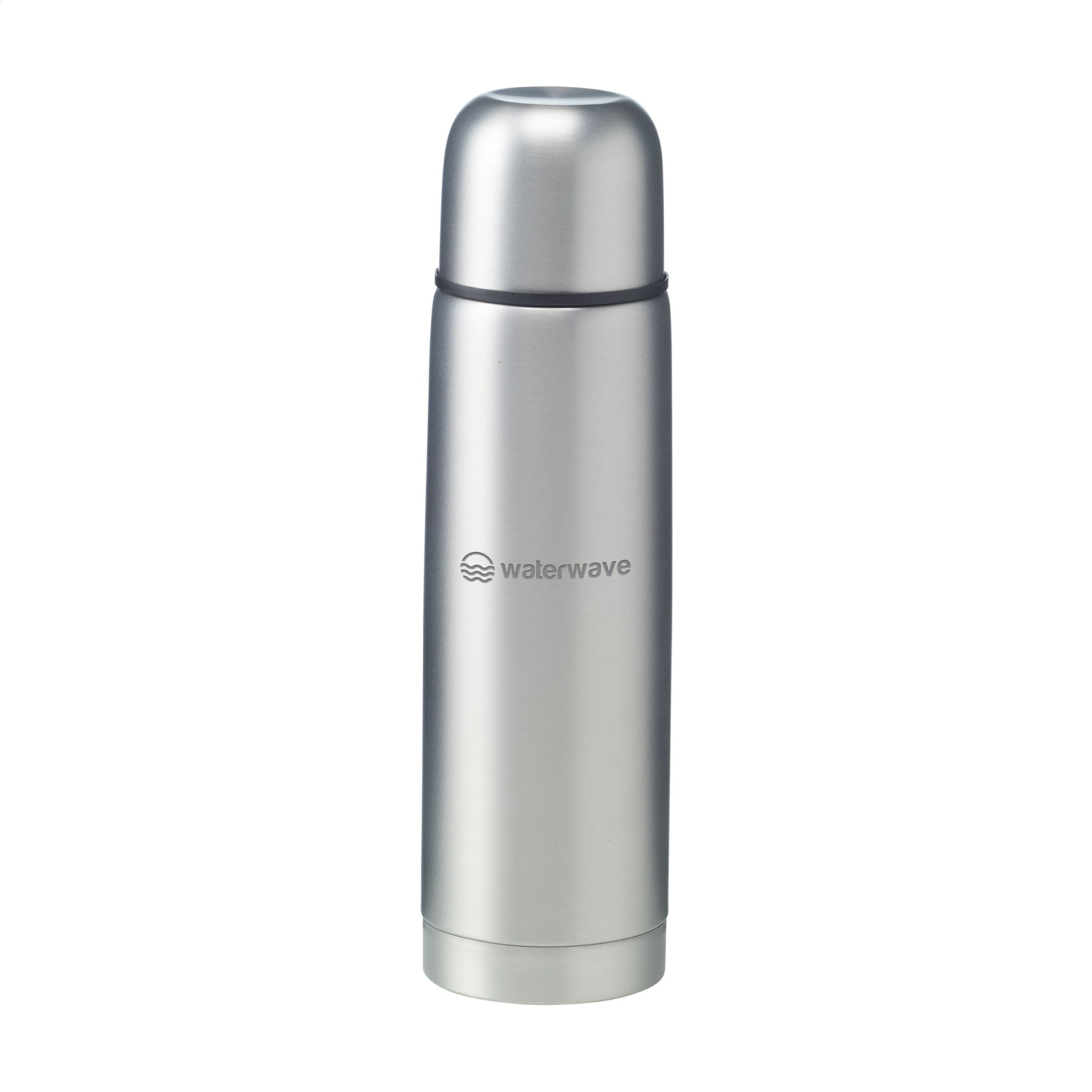 Термобутылка из нержавеющей стали с двойными стенками, вакуумной изоляцией, двойной завинчивающейся крышкой и удобной системой розлива с защелкивающимся замком. Герметичная. Крышку также можно использовать в качестве чашки для питья. Отделана матовым металлическим покрытием. Емкость 500 мл. Каждый предмет упакован в индивидуальную коробку.