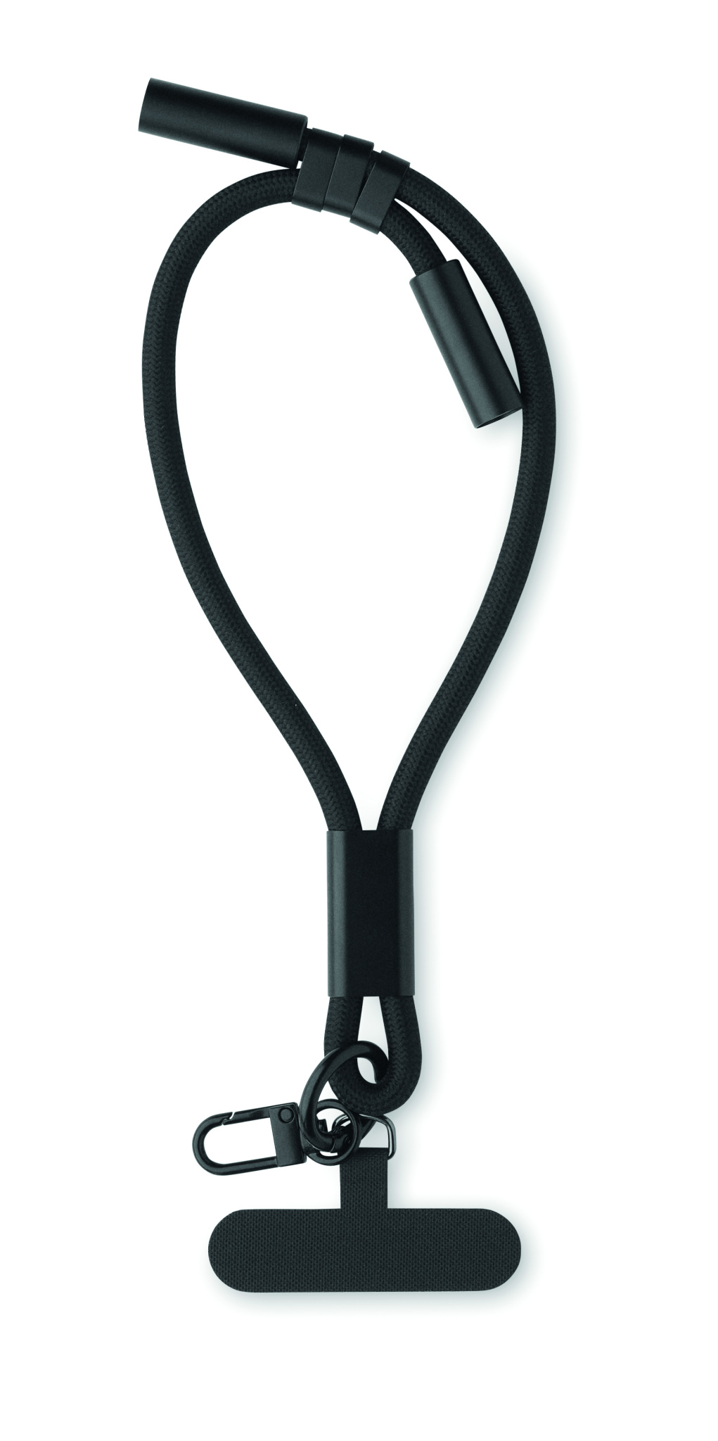 60W wristband charging and data cable type-C to type-C in RPET with phone cord holder and key clip.