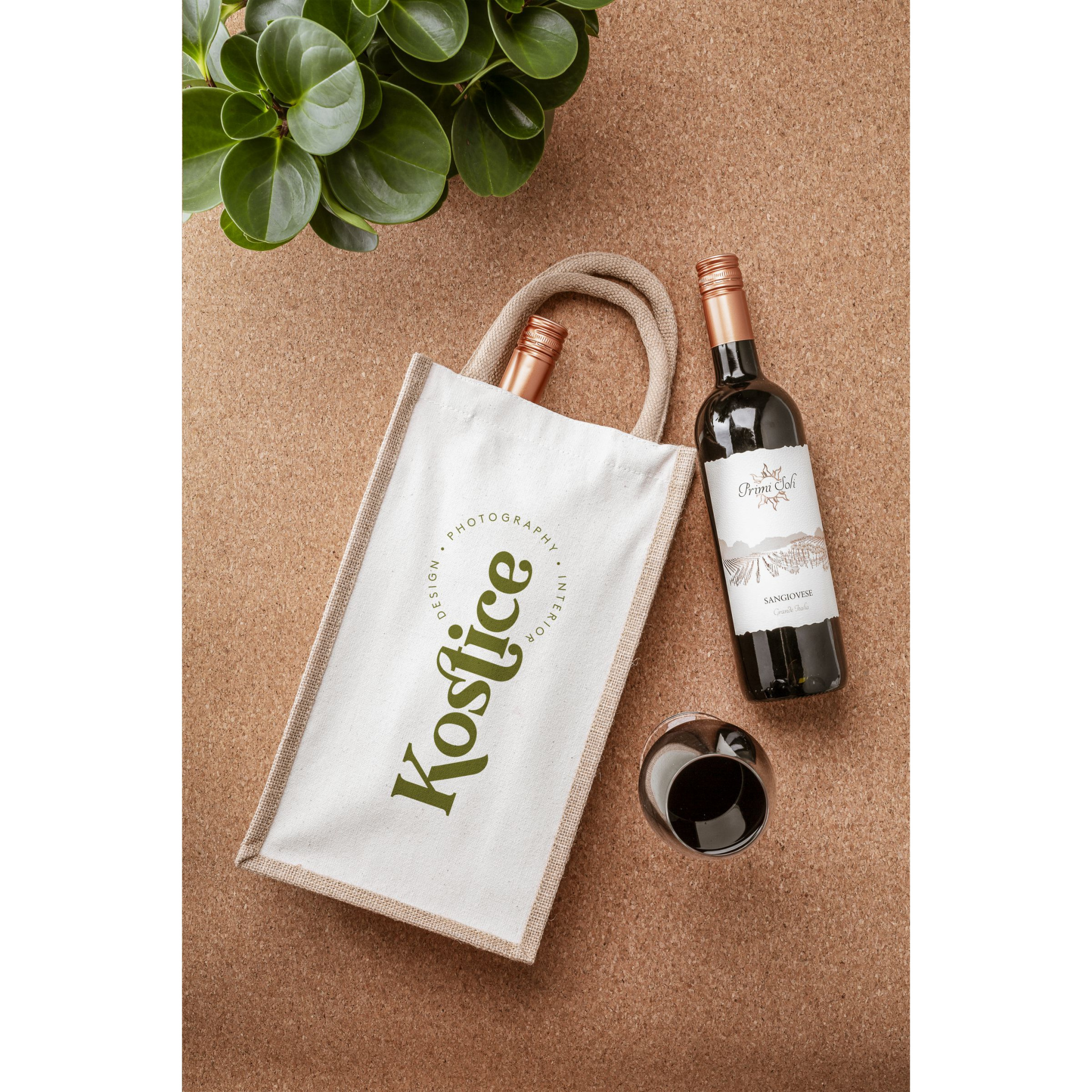 Двойная сумка для вина из джутового холста