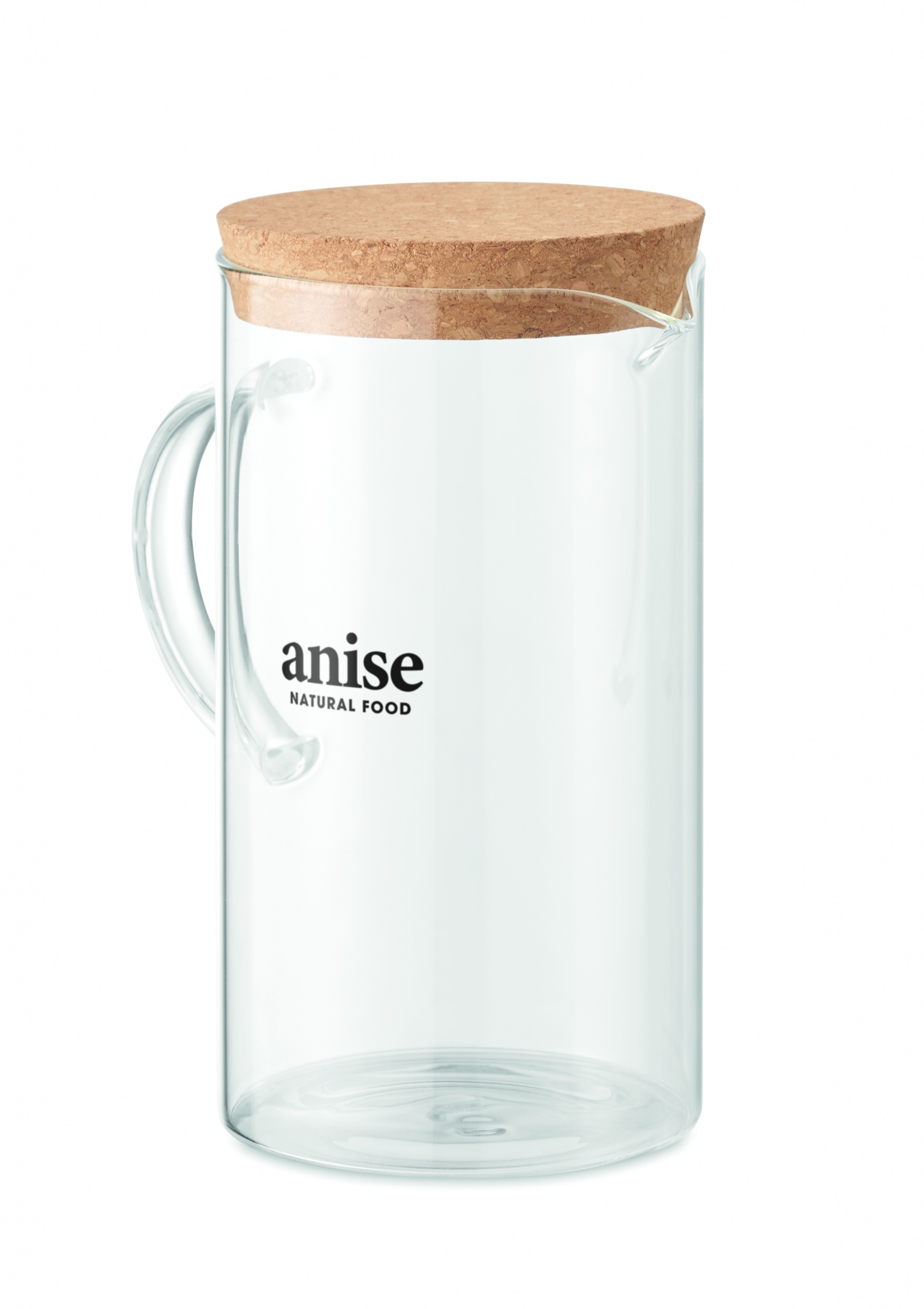 Графин или кувшин для воды / сока из боросиликатного стекла с пробковой крышкой. Емкость: 1л.