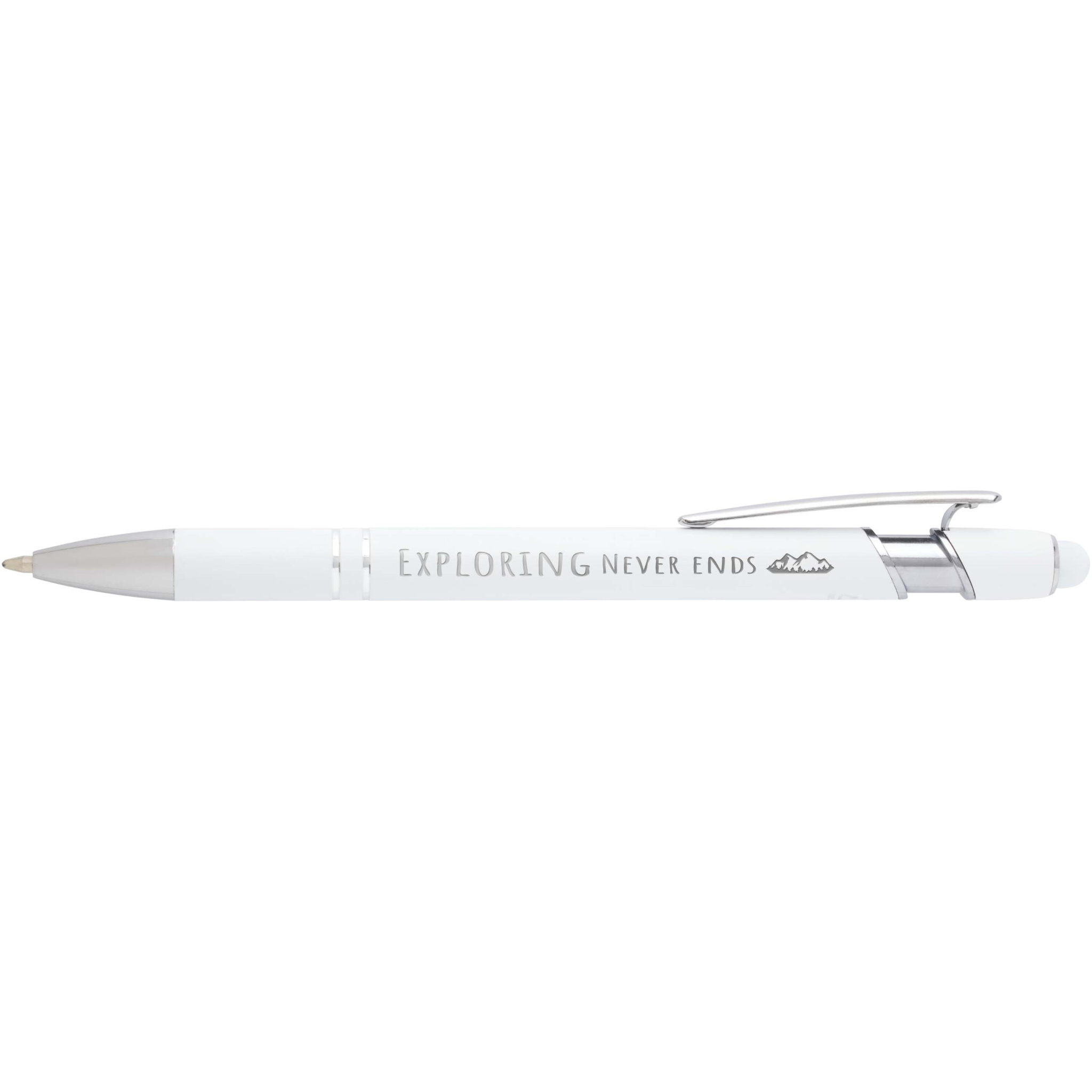 Шариковая ручка Kish с серебряным покрытием имеет корпус из переработанного алюминия и сенсорный стилус из силикона. Переработанный алюминий уменьшает количество отходов на свалках и помогает сохранять природные ресурсы для сокращения выбросов парниковых газов. Цвет чернил: синий. Длина непрерывной линии: 800 метров. Размер пера: 1,0 мм.