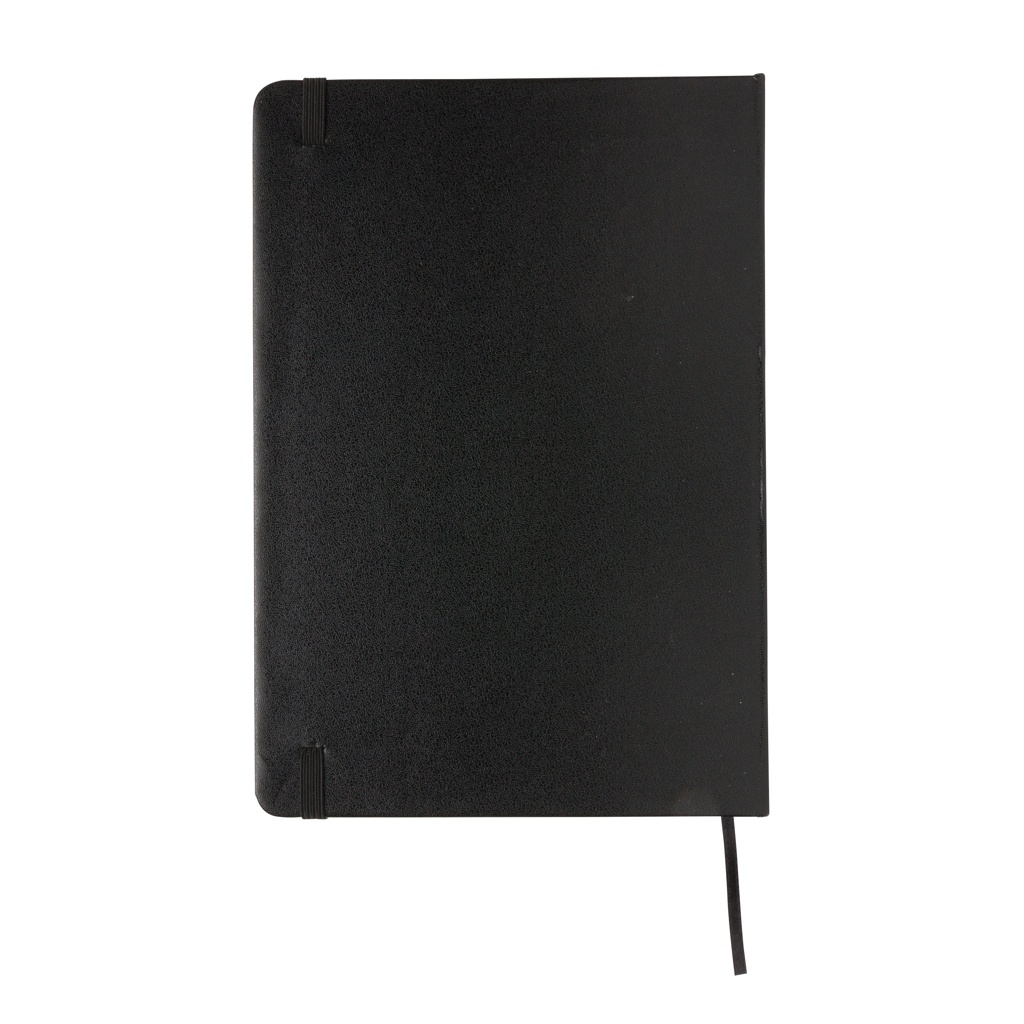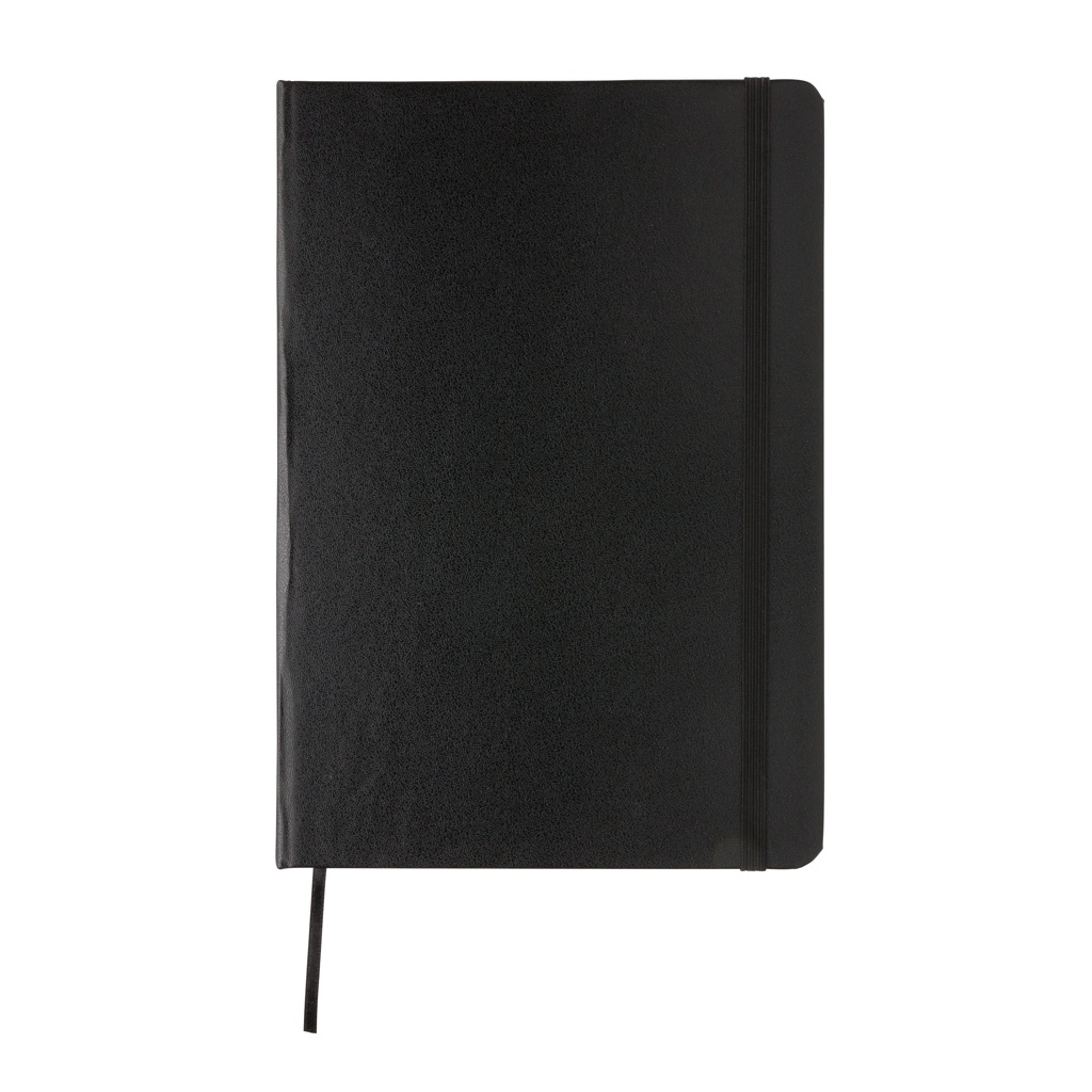Обычная стандартная тетрадь формата А5 в твердом переплете с эластичной застежкой и ленточкой-закладкой. Внутри 144 страницы бумаги плотностью 70 г/м2. Страницы кремового цвета. Идеально подходит для зарисовок, мыслей и мимолетных заметок.