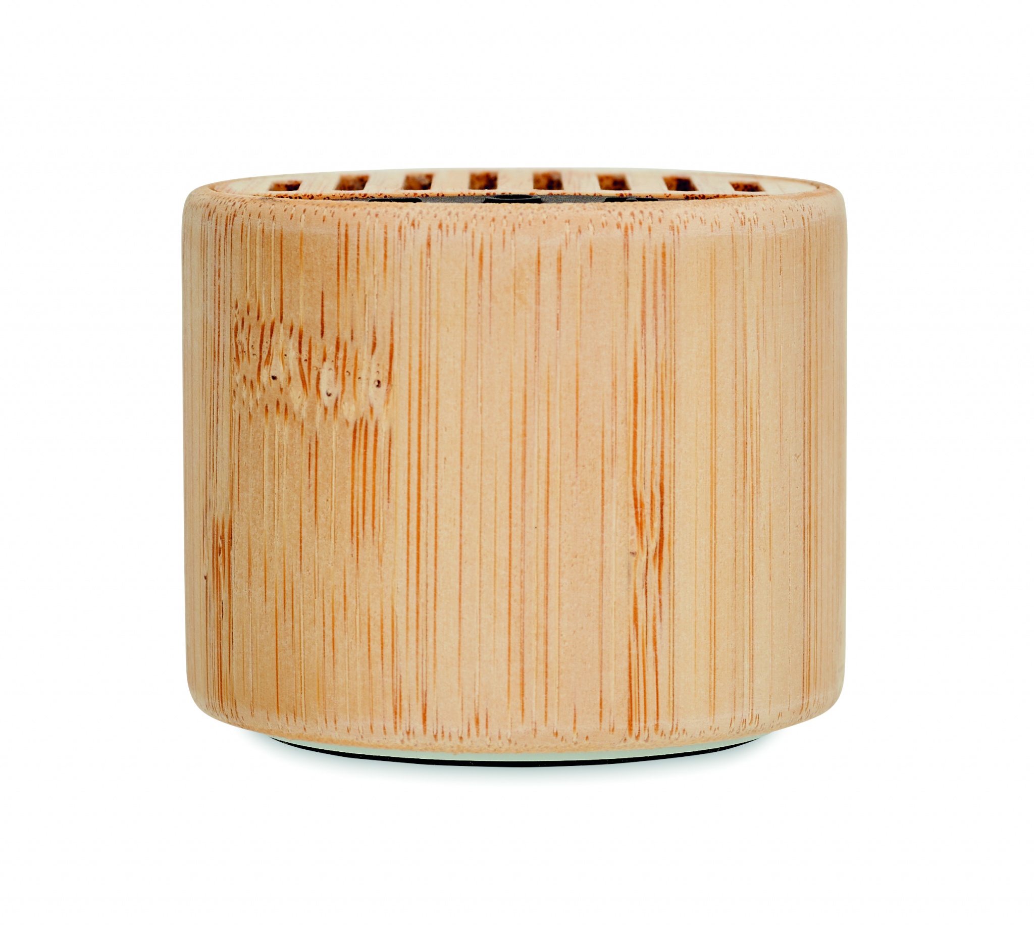 Беспроводная колонка 5.3 в бамбуковом корпусе со светодиодным индикатором. 300 мАч литионный аккумулятор в комплекте. Выход: 3 Вт, 4 Ом и 5 В. Время воспроизведения около 4 ч.