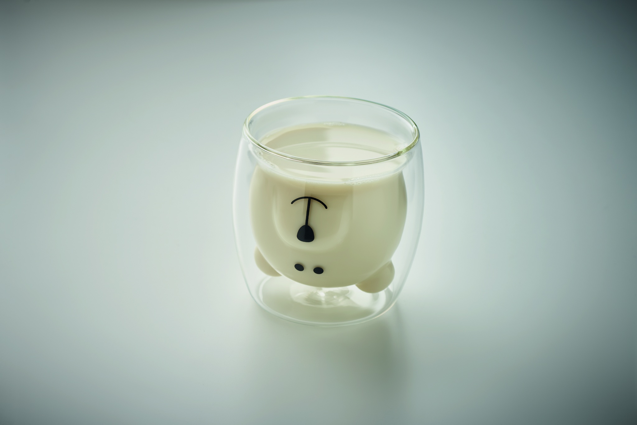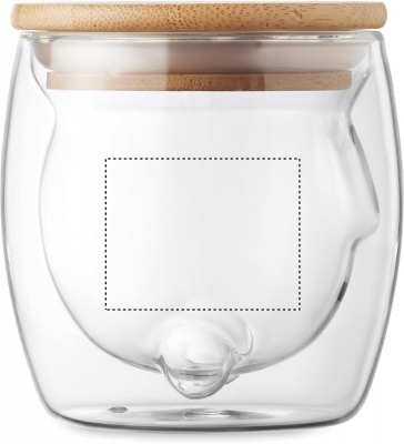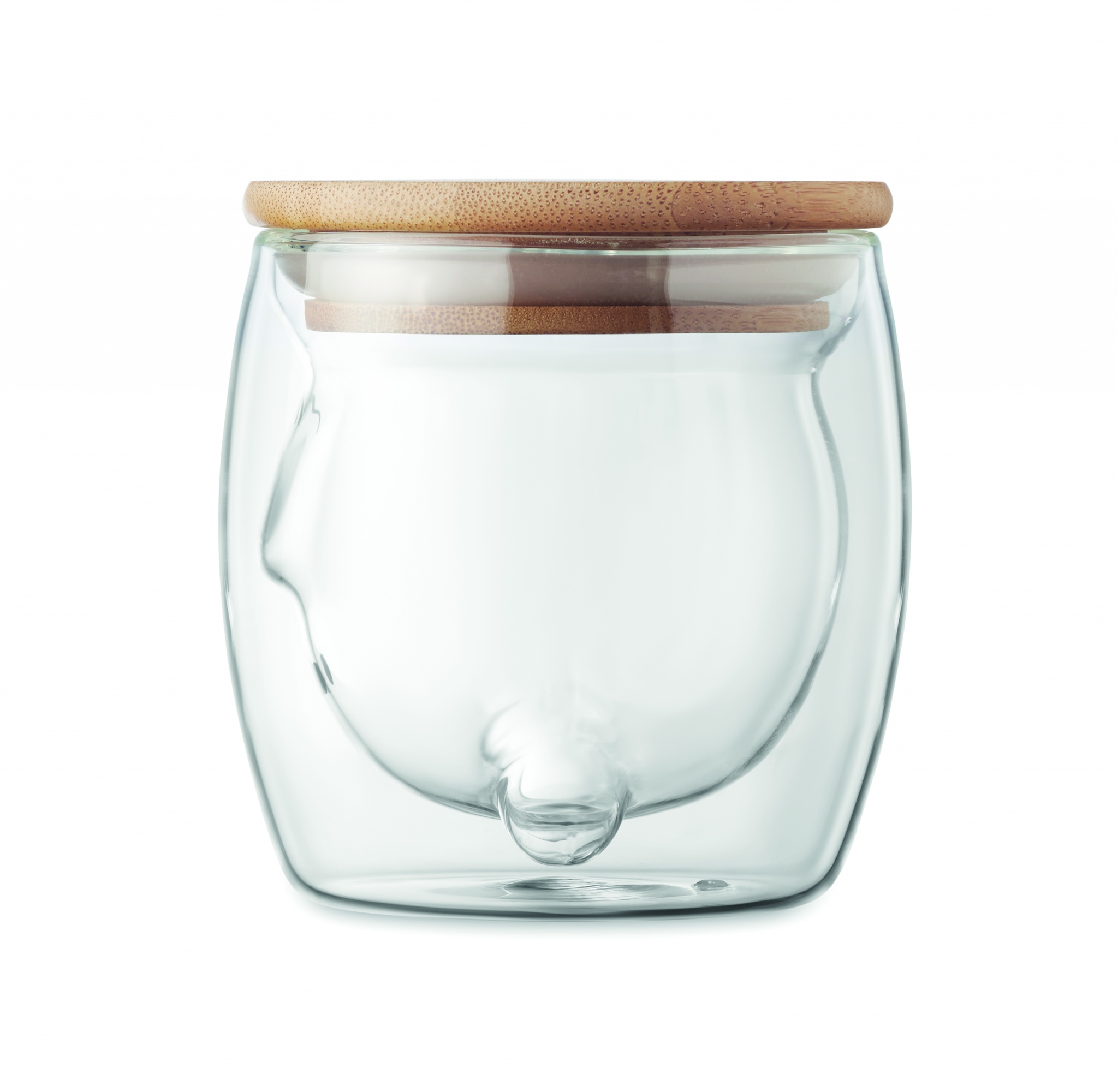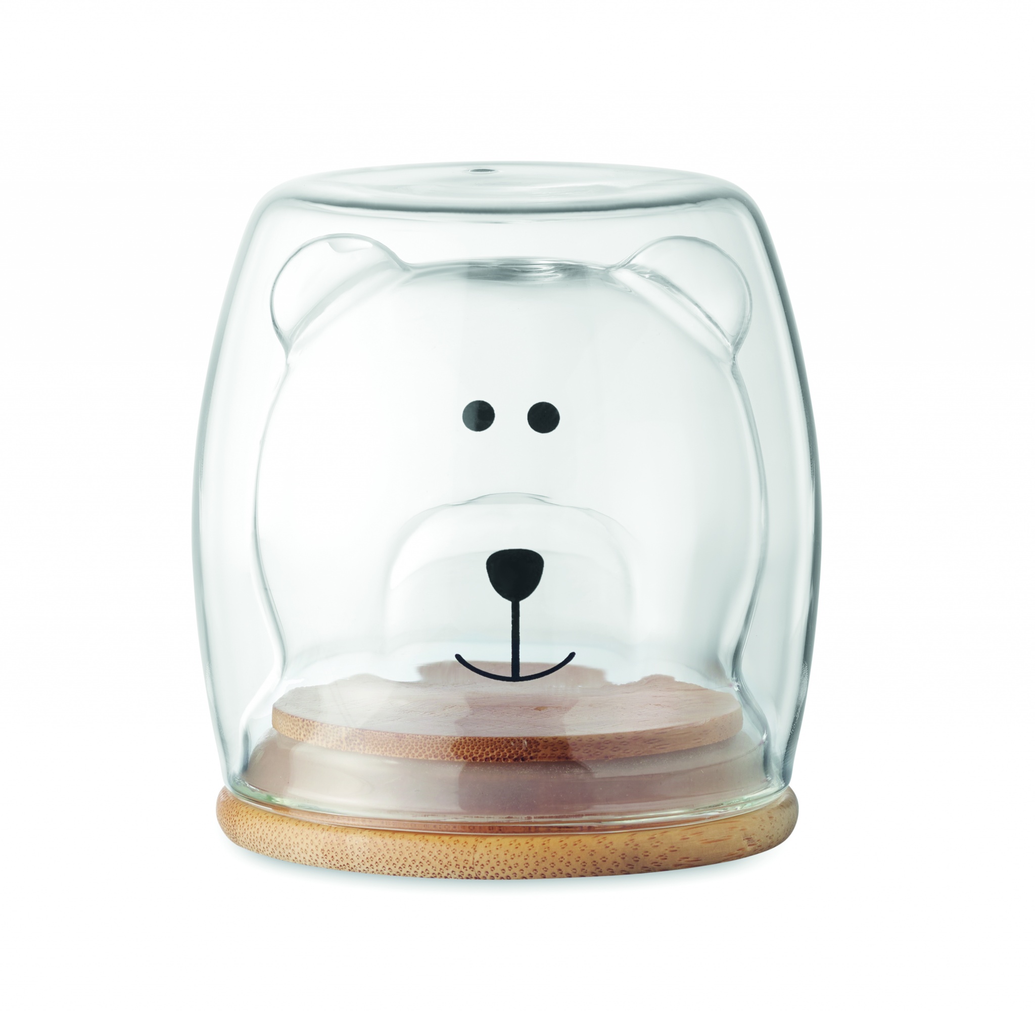 Кружка с двойными стенками из боросиликатного стекла с забавной медвежьей мордочкой и бамбуковой крышкой. Объем: 260 мл.