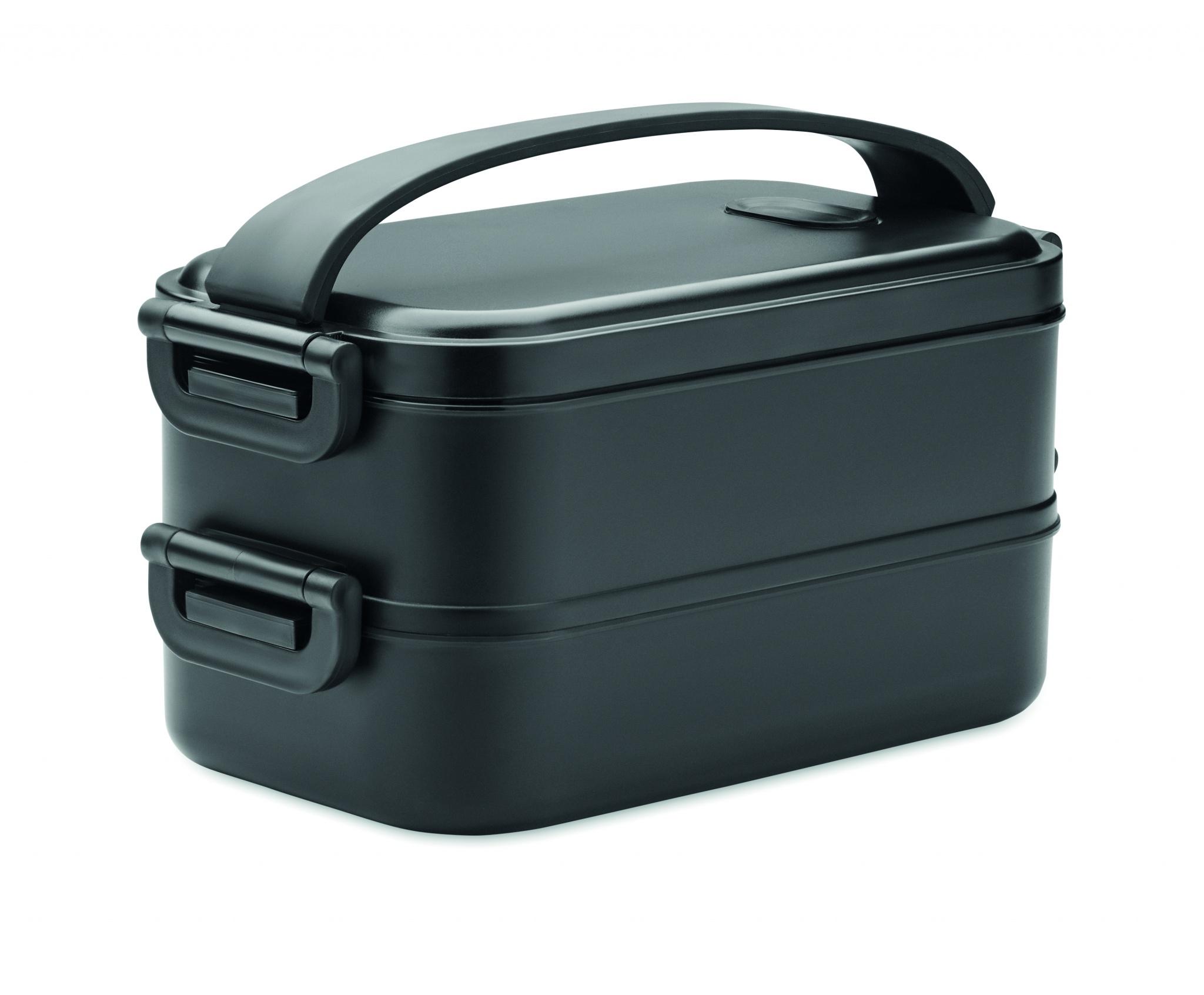 Двухуровневый ланч-бокс из переработанного полипропилена со съемным разделителем и боковыми застежками, герметичная крышка. Вместимость: 800 мл (1 уровень).