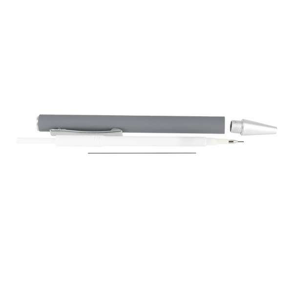 Механический карандаш из металла с резиновым покрытием и двумя грифелями (0,5 мм).