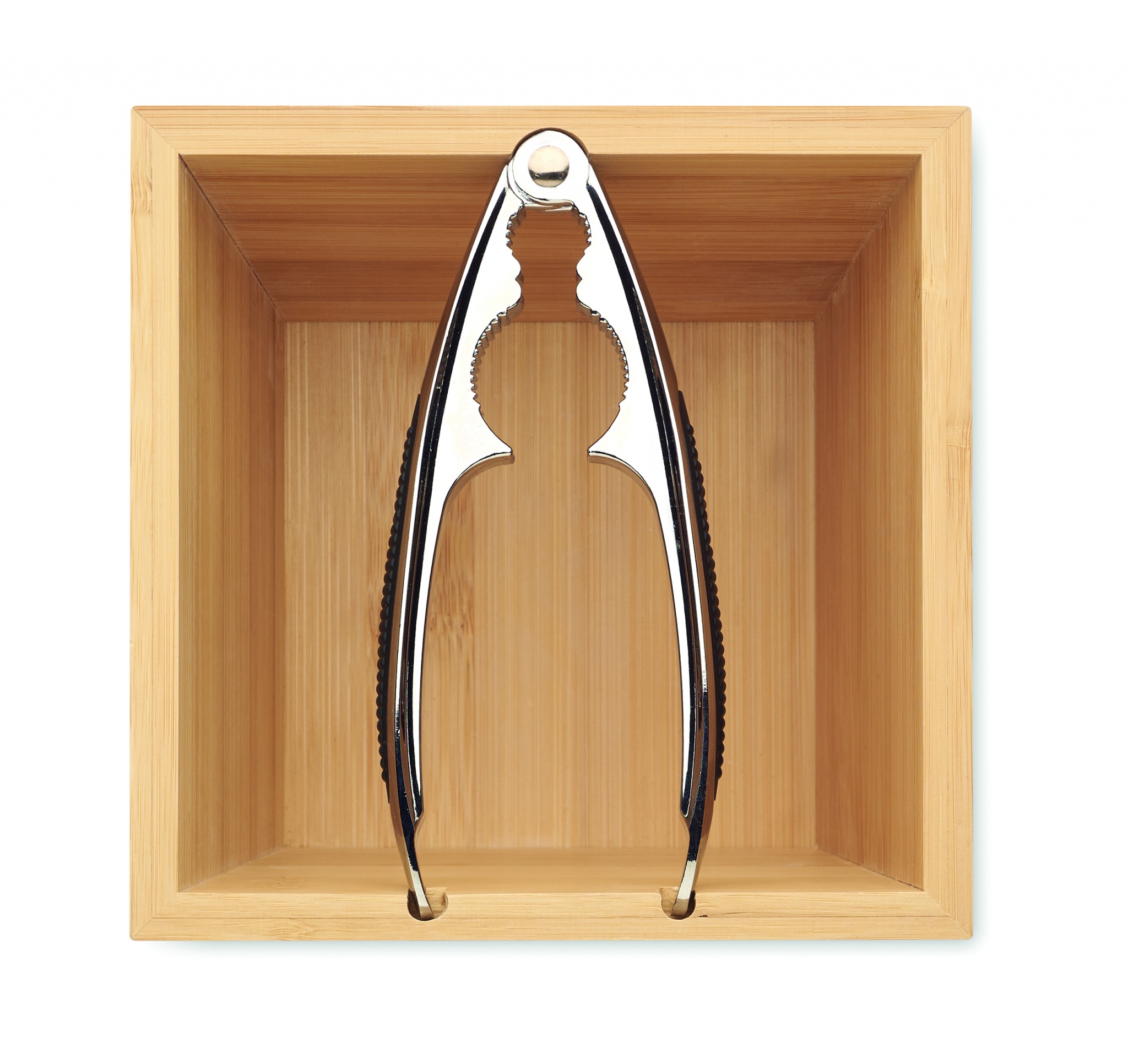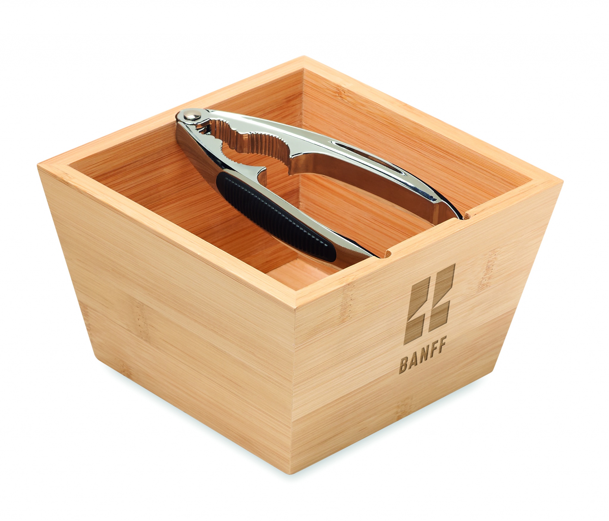 Набор для орехов с бамбуковой чашей и металлическим орехоколом из цинкового сплава и термопластичной резины