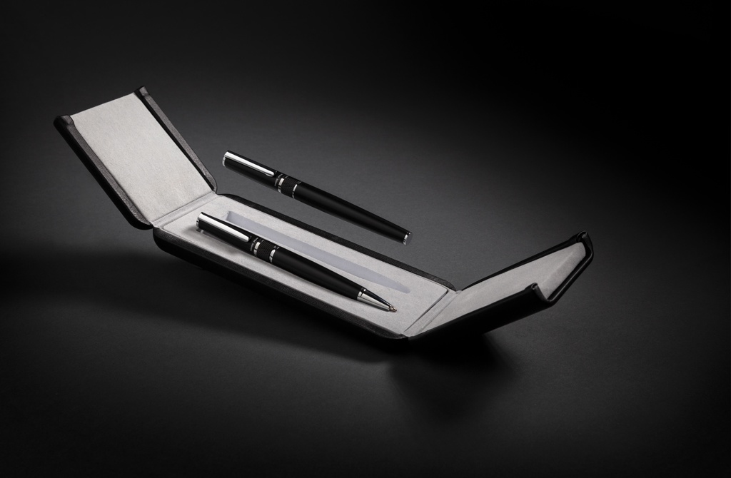 Этот роскошный набор ручек привнесет элегантность и стиль в ваши письма. Набор состоит из шариковой ручки и роллера с синими чернилами в красивой подарочной коробке с тисненым логотипом. Ручка имеет стержень Dokumental с шариком t/c для сверхгладкого письма. Роллер имеет синий стержень Dokumental. Средняя длина письма для обеих ручек составляет 1200 метров.