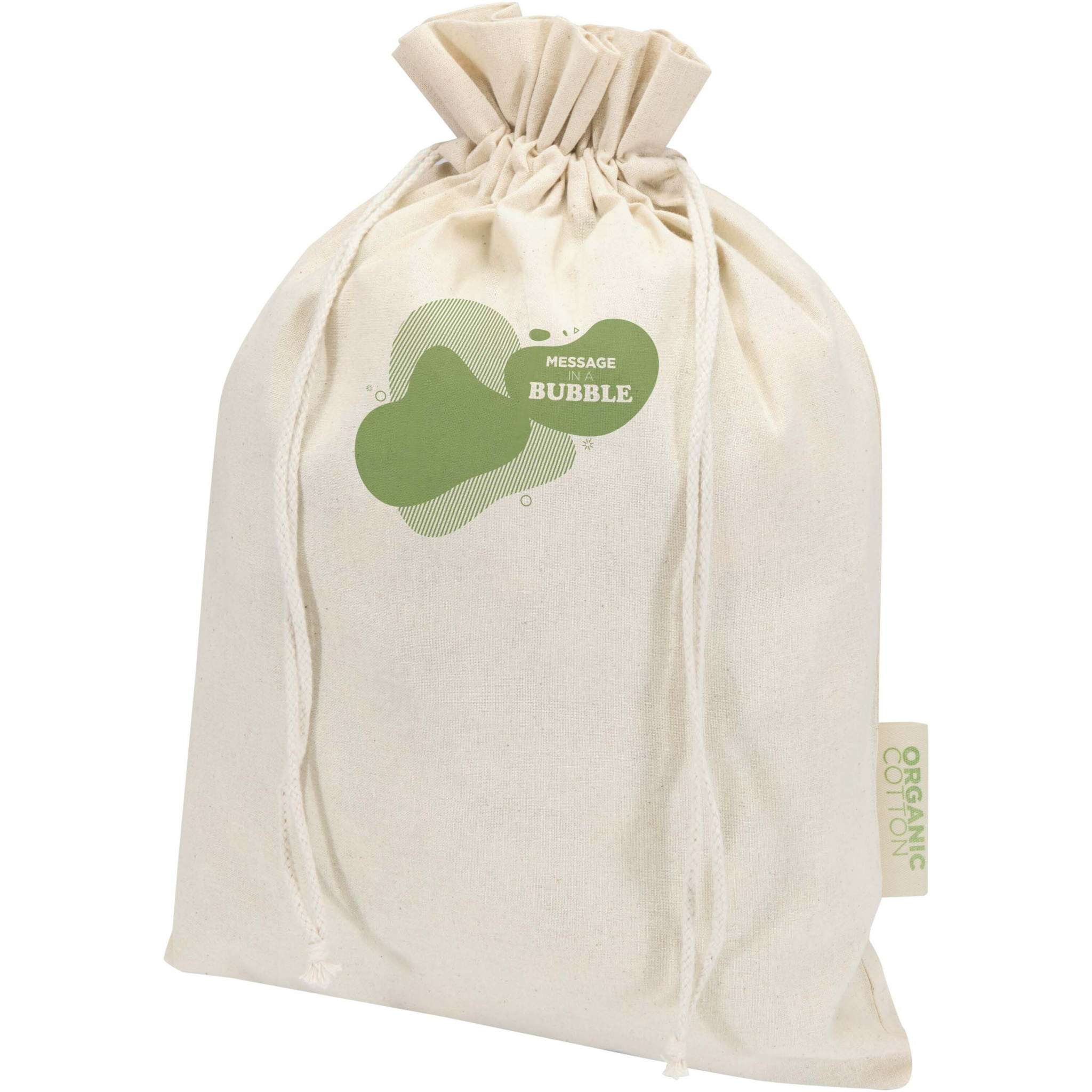 Подарочный пакет из 100% органического хлопка плотностью 140 г/м², сертифицированного OCS, с застежкой на хлопковый шнурок. Идеально подходит для подарков или хранения предметов. Размер: 42 x 30 см.