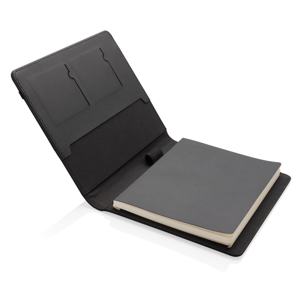 Поднимите свой профессиональный имидж с помощью этого портфеля формата А5, изготовленного из переработанного полиэстера и сертифицированного RCS переработанного полиуретана. Внутри вы найдете 3 отделения для карточек, держатель для ручки и карман для документов формата А5. Организуйте свои дела с помощью блокнота формата А5 с возможностью пополнения, выполненного из кремовой бумаги FSC® и плотностью 80 г/м2. Упакованный в подарочную коробку FSC®, этот портфель легко сочетает в себе стиль и функциональность. Изготовлен из 100% переработанного полиэстера с встроенным маркером AWARE™.