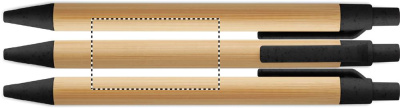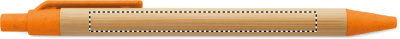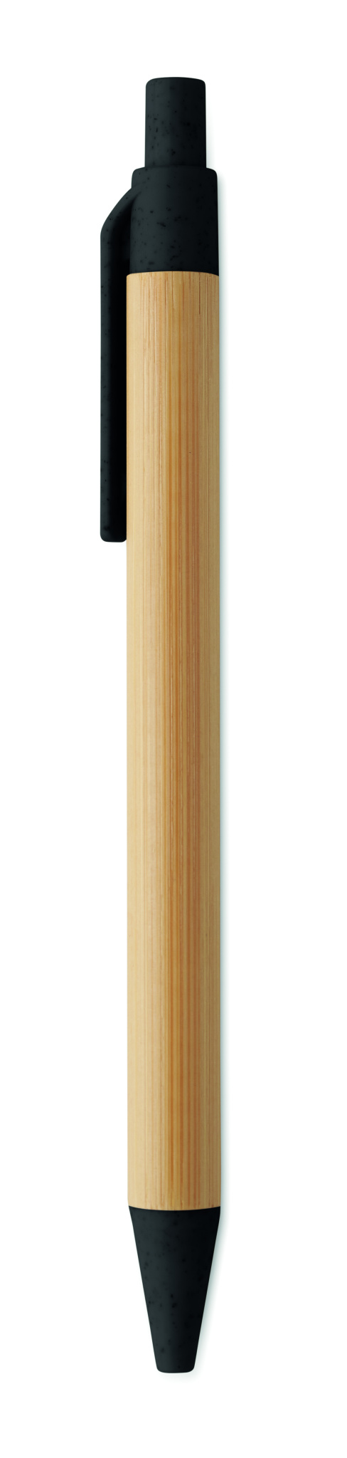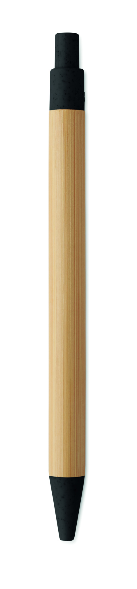 Push button ball pen with bamboo barrel and wheat straw (50%) and ABS plastic (50%) fittings. Blue ink.