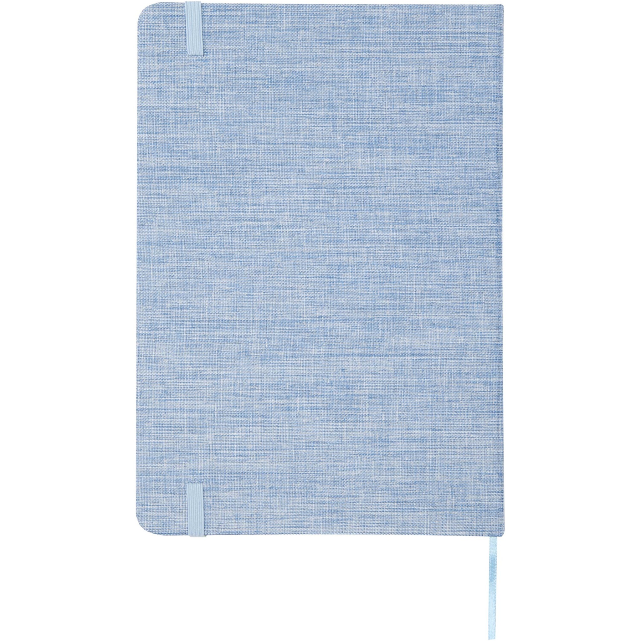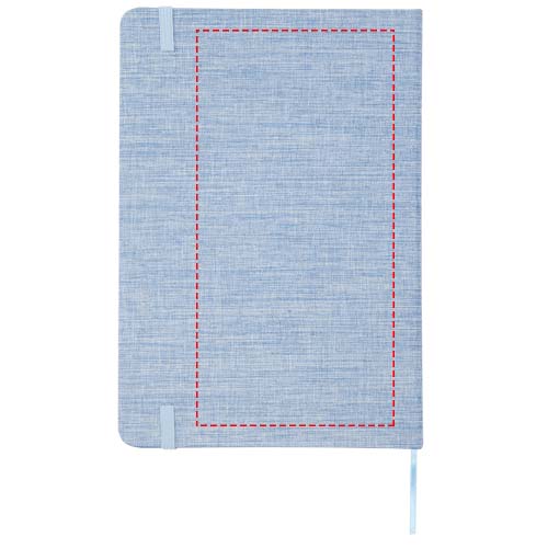 Блокнот формата А5 в твердой обложке из переработанного хлопка, 80 листов бумаги плотностью 70 г/м² в линейку. Блокнот имеет эластичную застежку, ленту и закругленные углы.