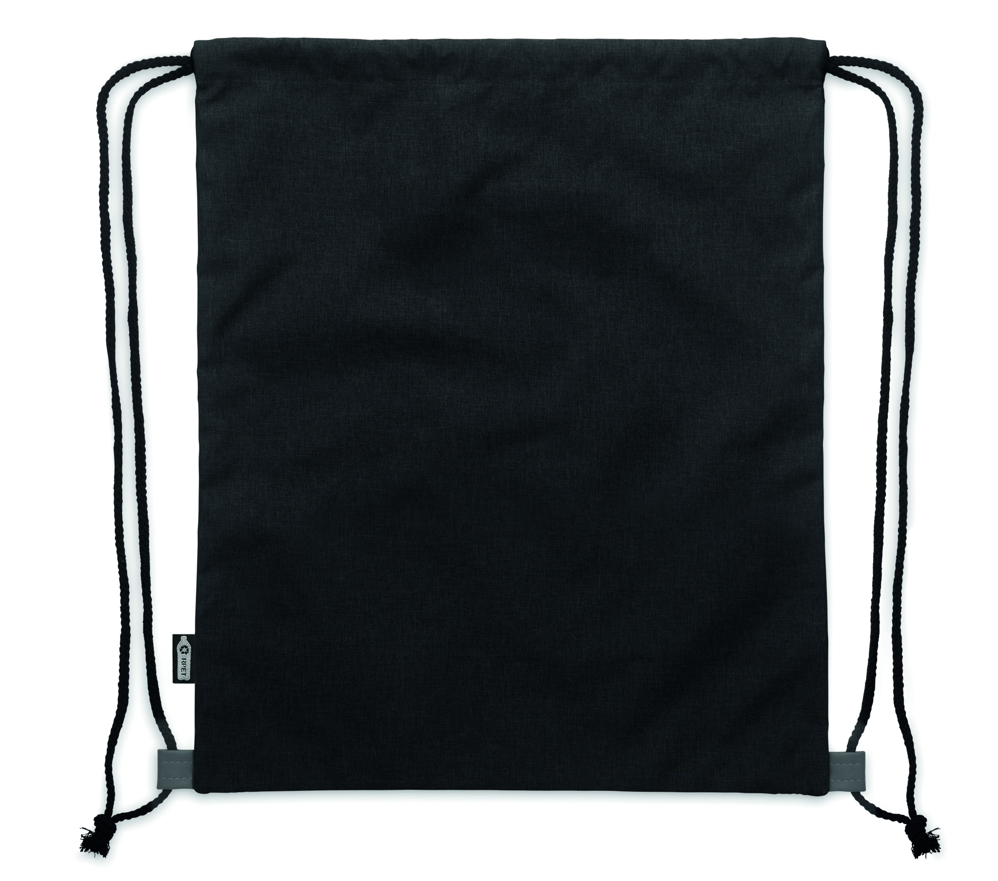 Drawstring bag in 2 tone 300D RPET polyester with soft PU detail and polycotton cord.