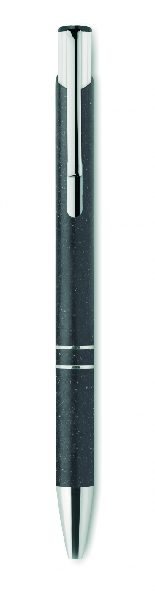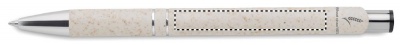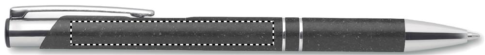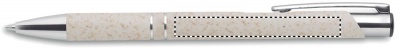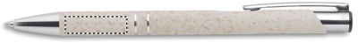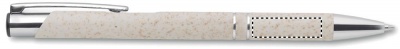 Шариковая ручка, состоящая на 50% из соломы и на 50% из пластика с серебряными вставками. Синие чернила.