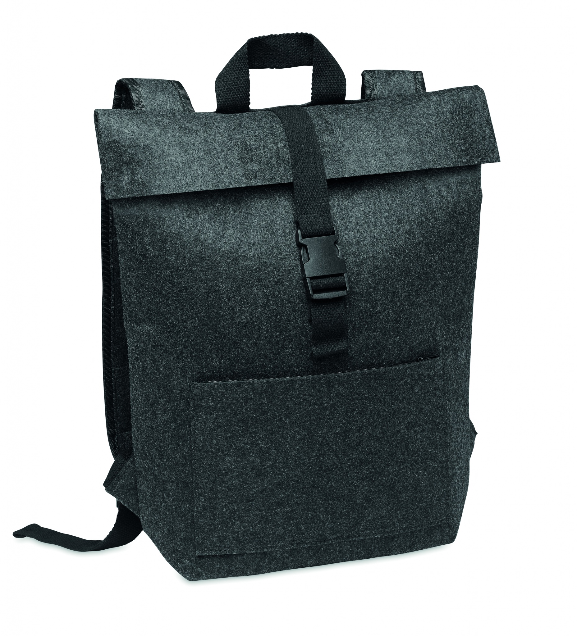 Рюкзак из переработанного войлока RPET с хлопковым ремешком и карманом на молнии спереди. Имеет отделение для ноутбука.