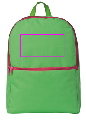 Долговечный рюкзак из полиэстера 600D в ярких цветах с большим основным отделением и дополнительным передним отделением. Ваш логотип будет напечатан на переднем отделении.