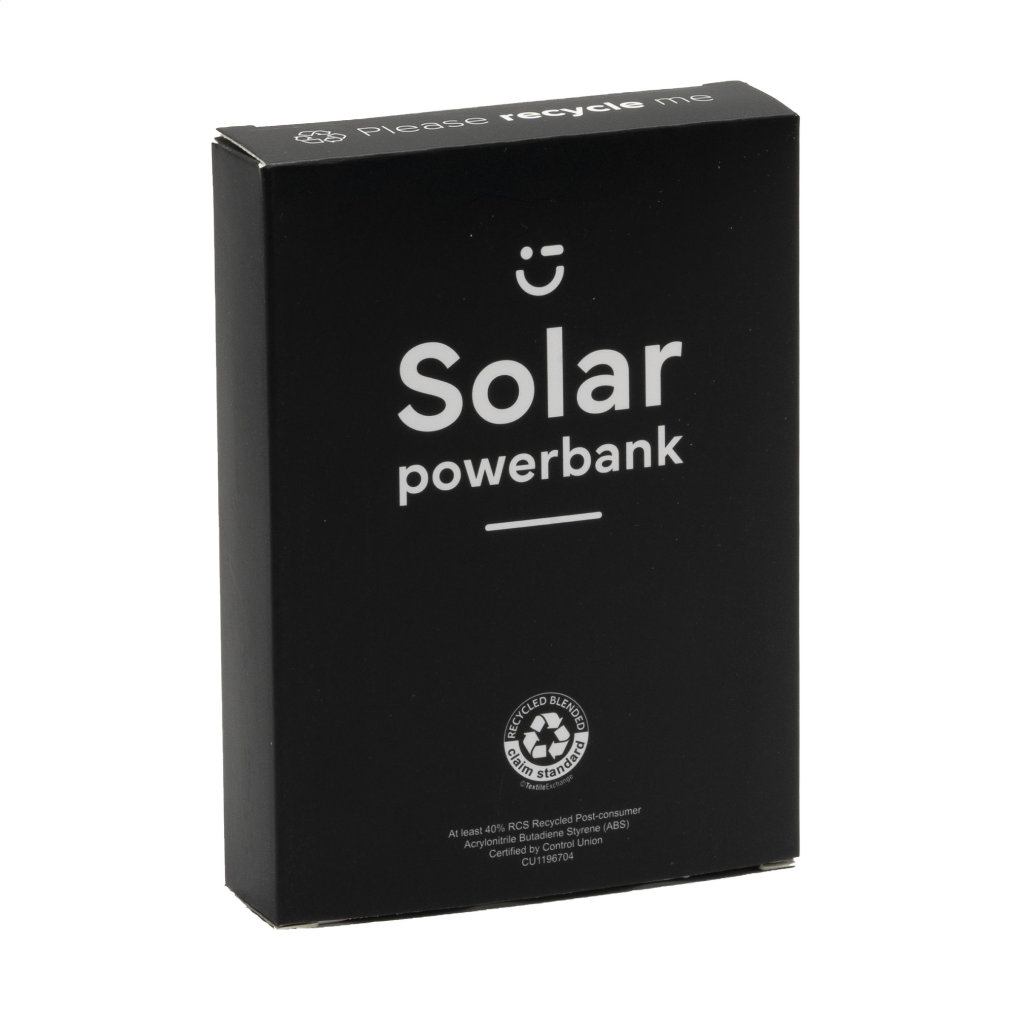 Мощный, емкий внешний аккумулятор с солнечной панелью и встроенным перезаряжаемым полимерным аккумулятором (4000 мАч). Может заряжаться от солнечной энергии или от сети (через порт USB). Корпус изготовлен из переработанного АБС-пластика. Вход: 5 В/1 А. Выход: 5 В/1 А. Включает кабель для зарядки с разъемом USB-C, разъем USB-C и руководство пользователя. Сертифицировано RCS. Общее количество переработанных материалов: 40%. Каждый предмет упакован в индивидуальную коробку.