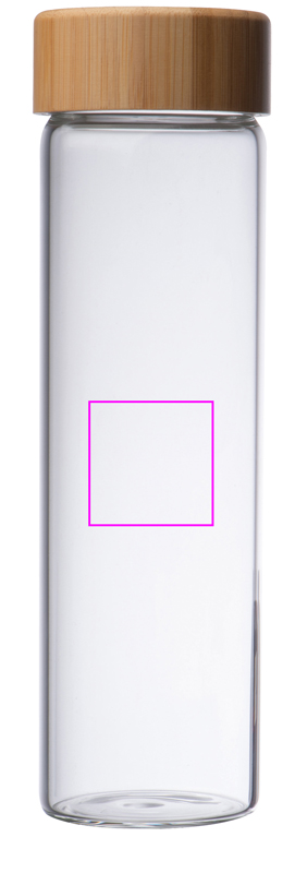 Стеклянная бутылка с бамбуковой крышкой и емкостью 500 мл. На крышке будет выгравирован ваш логотип.