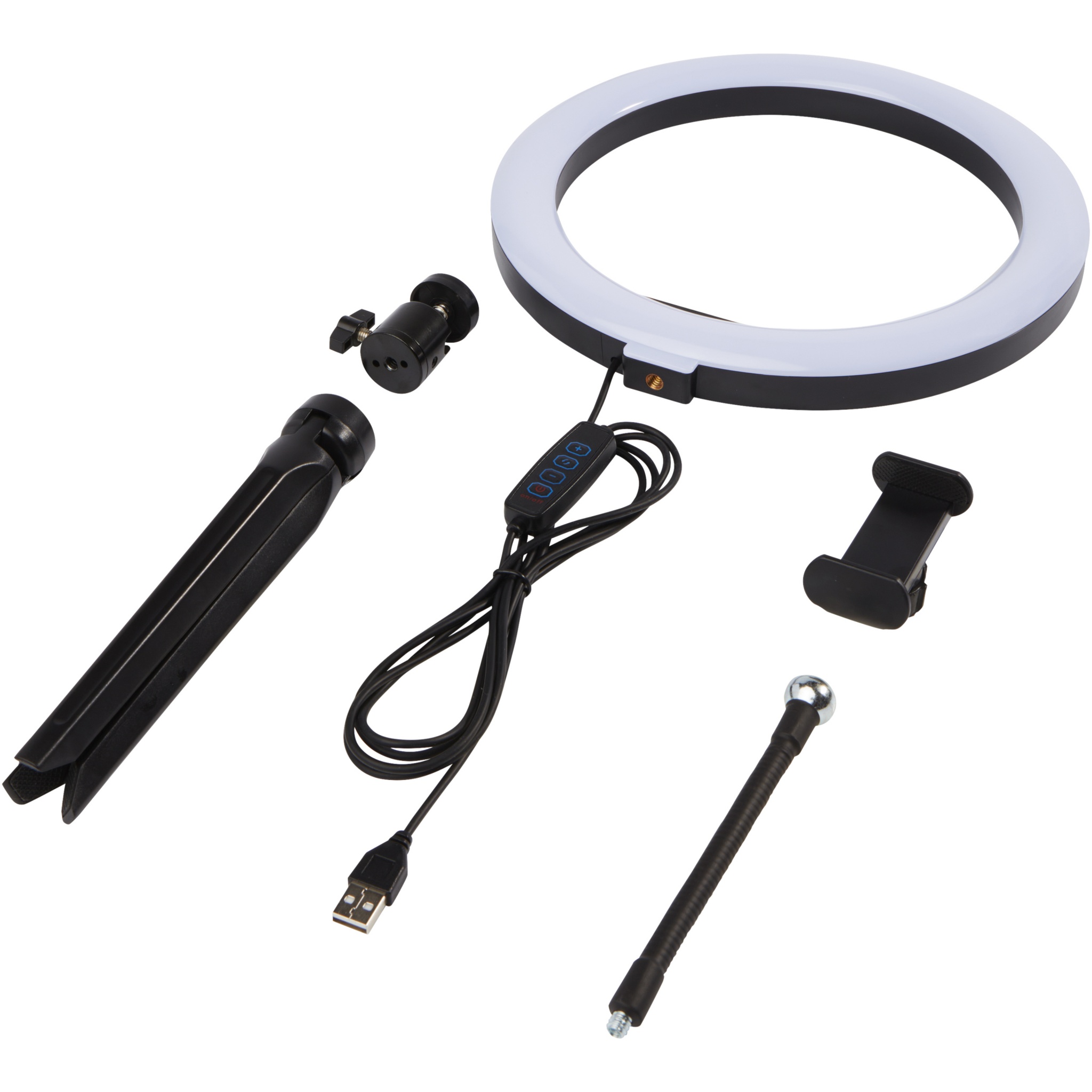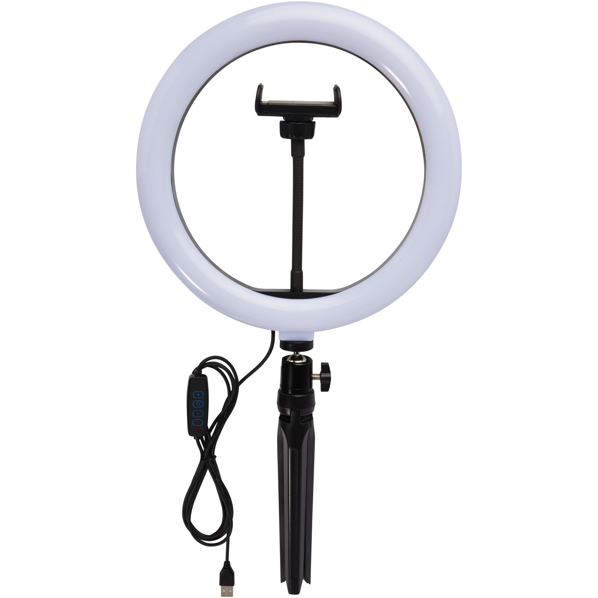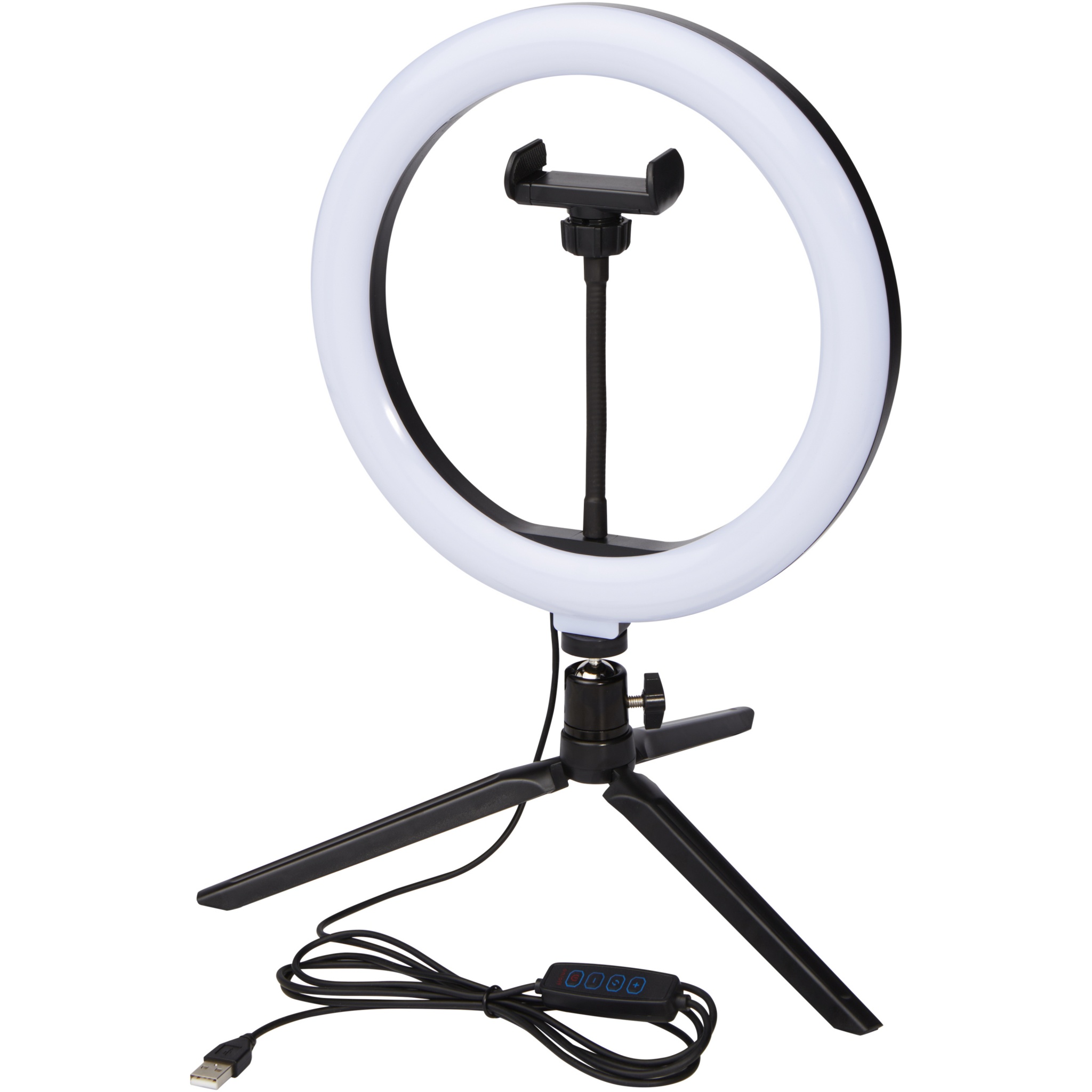 Лого трейд бизнес-подарки фото: Studio Кольцевая лампа с держателем для телефона и штативом