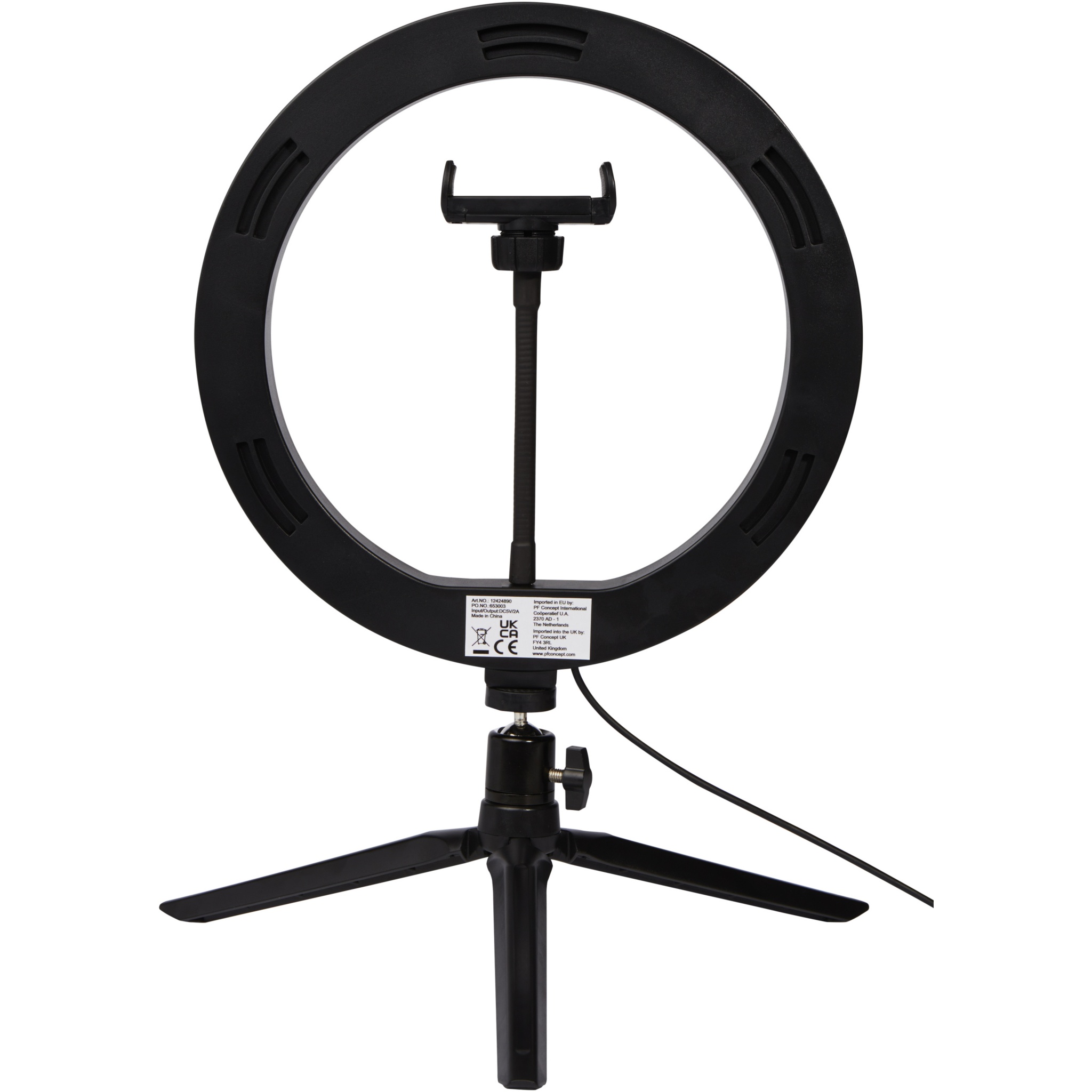 Studio Кольцевая лампа с держателем для телефона и штативом, Сплошной черный