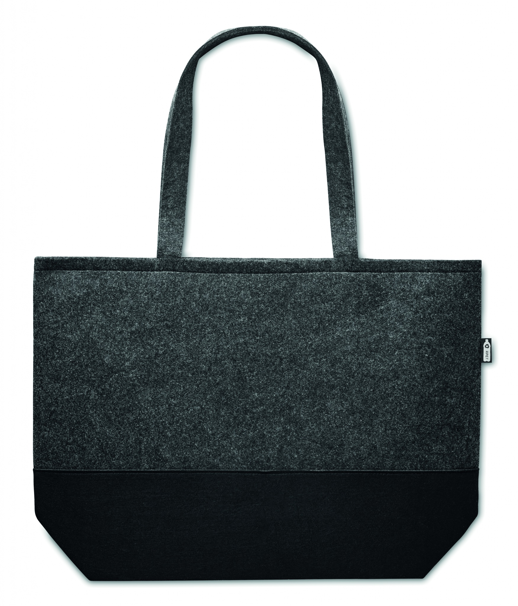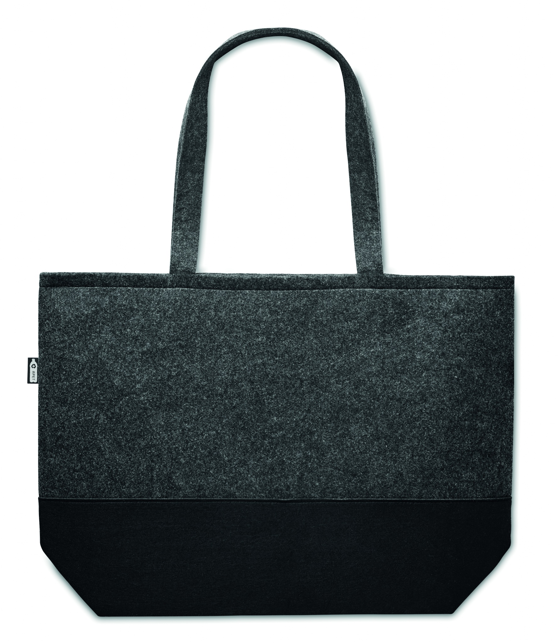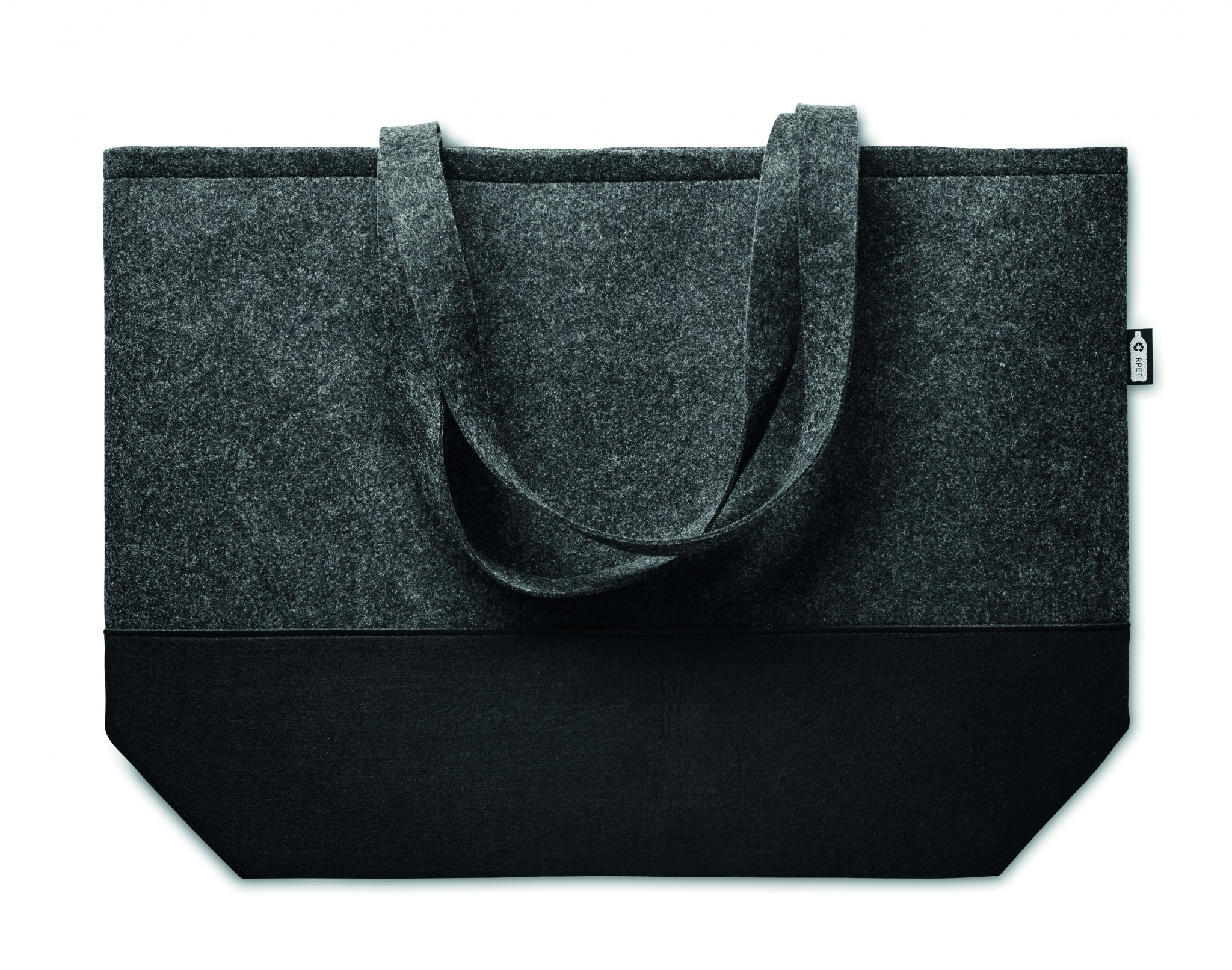 Сумка для покупок из переработанного фетра RPET с длинными ручками и разноцветным низом.