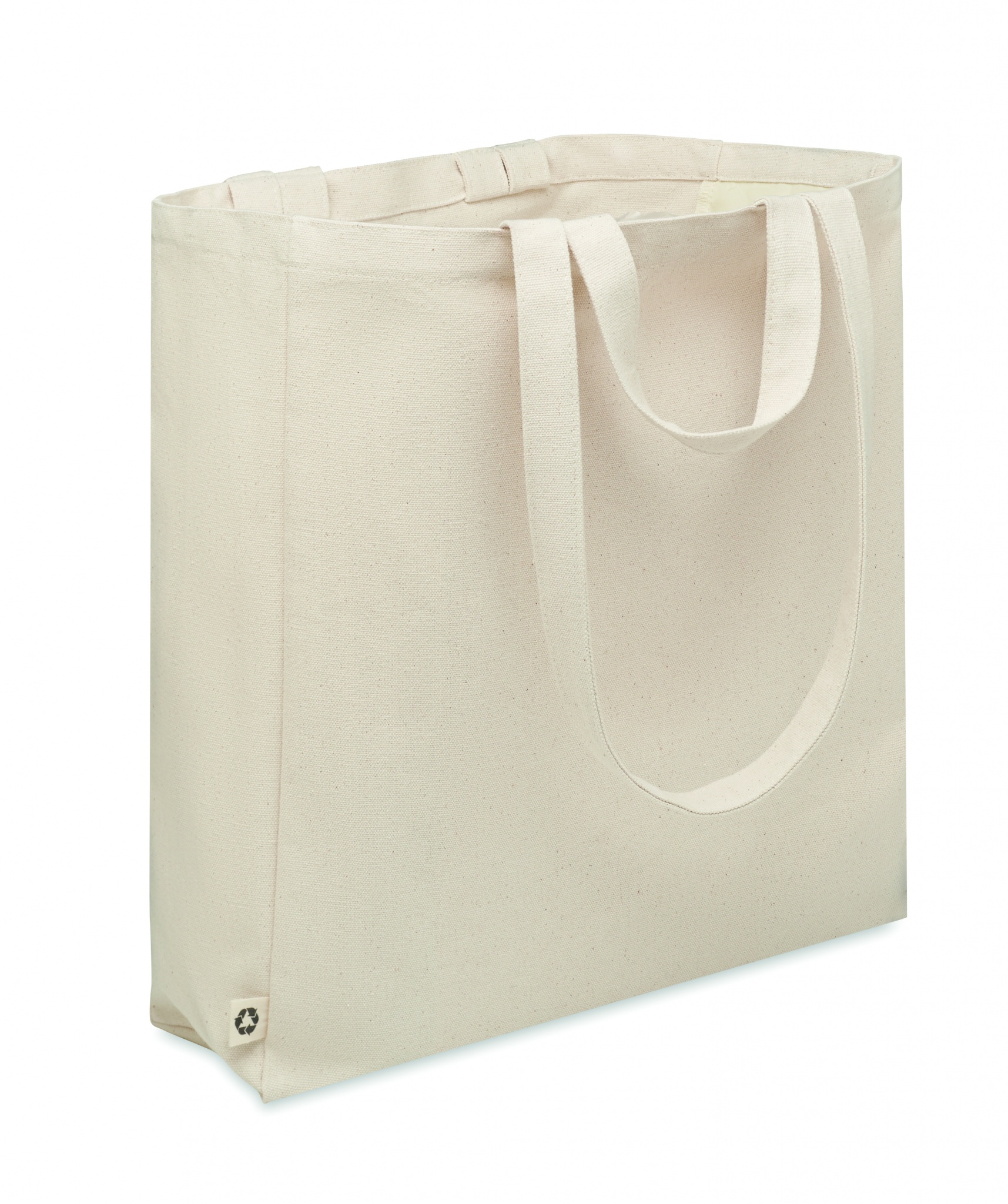 Сумка для покупок или пляжа из переработанного поликоттона (70% переработанного хлопка, 30% переработанного полиэстера) с короткими ручками. Имеет боковой карман на молнии гр/м² 380.