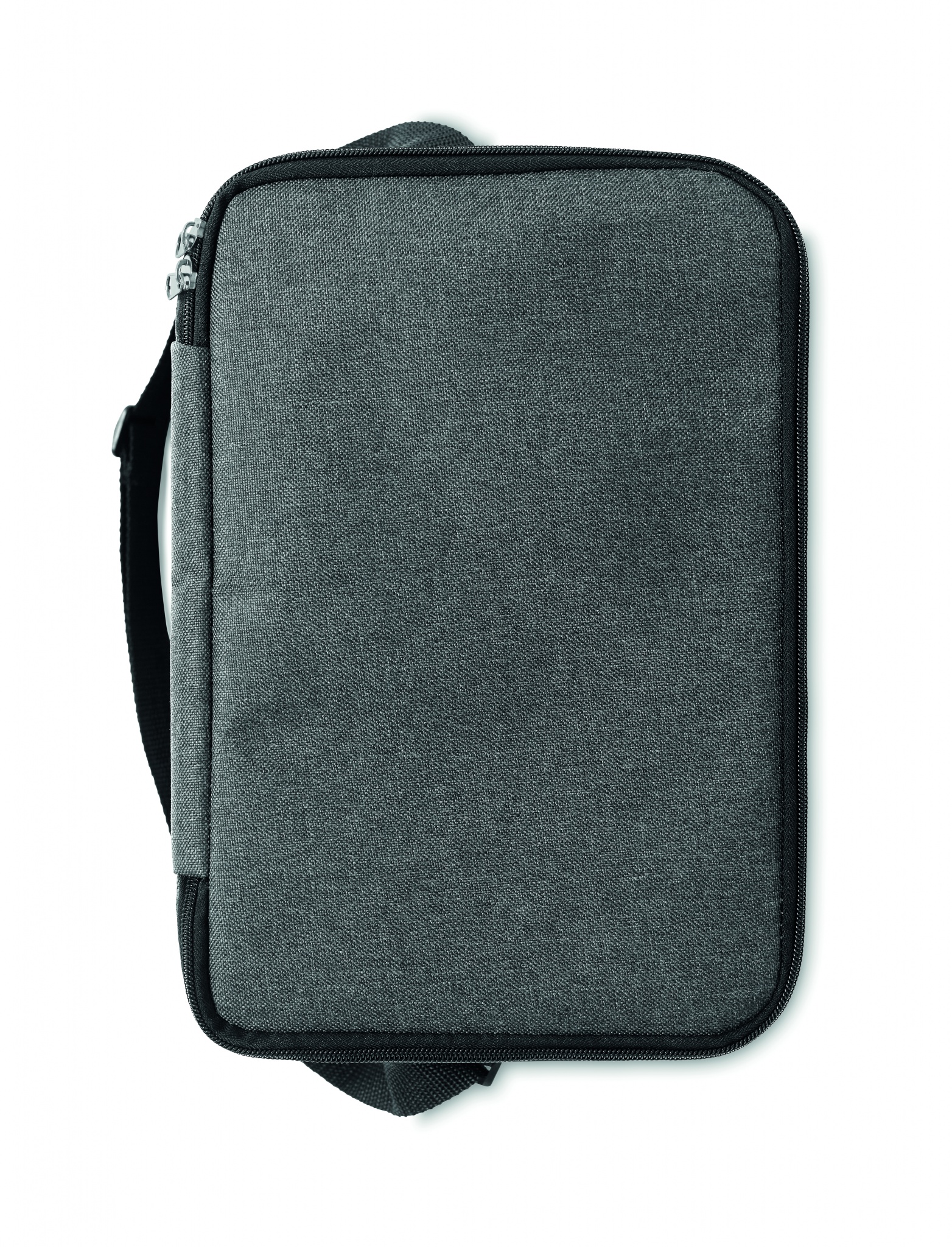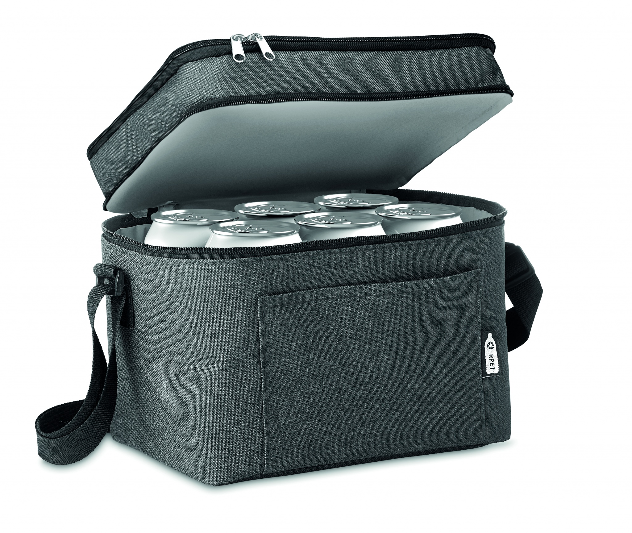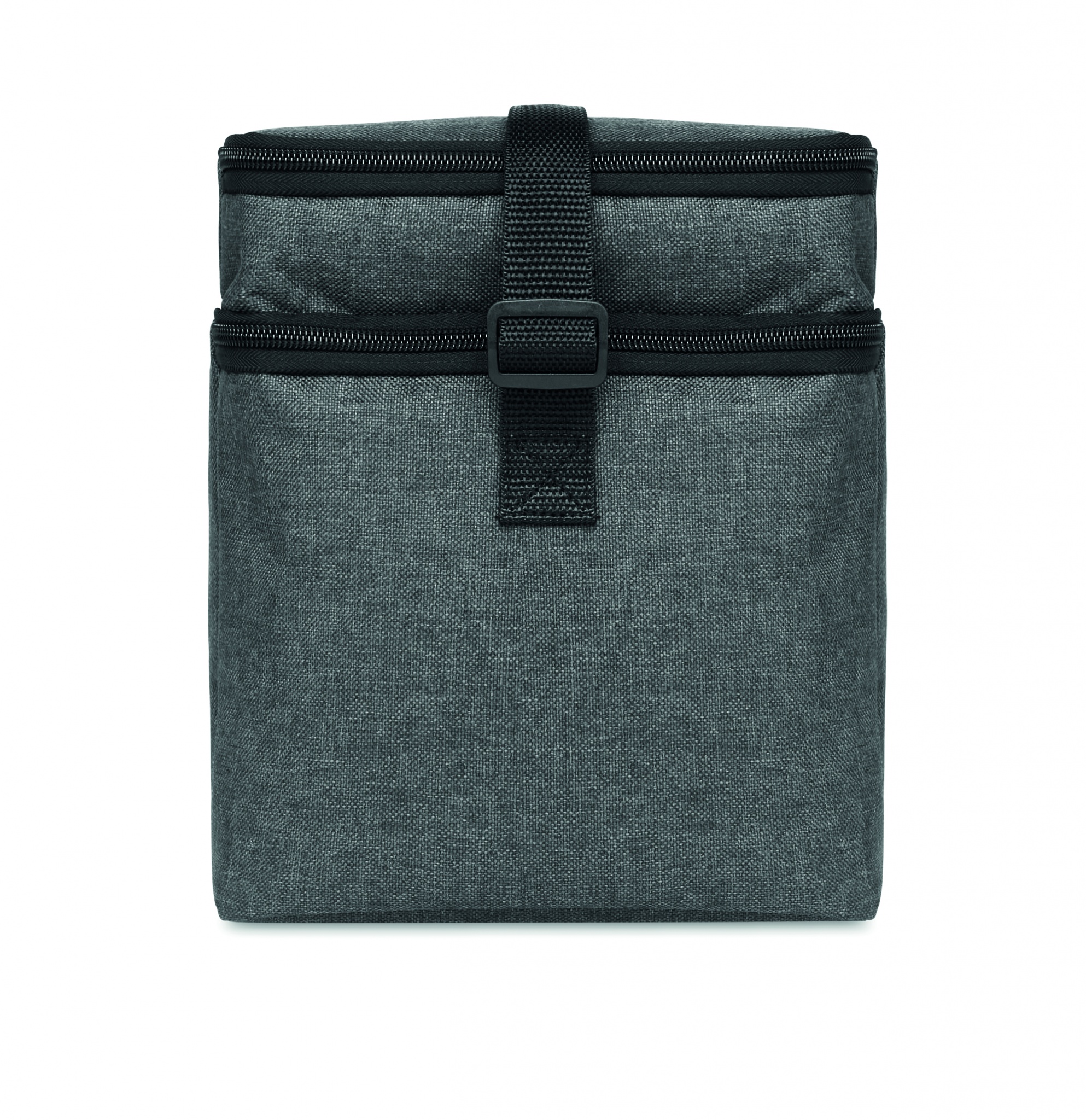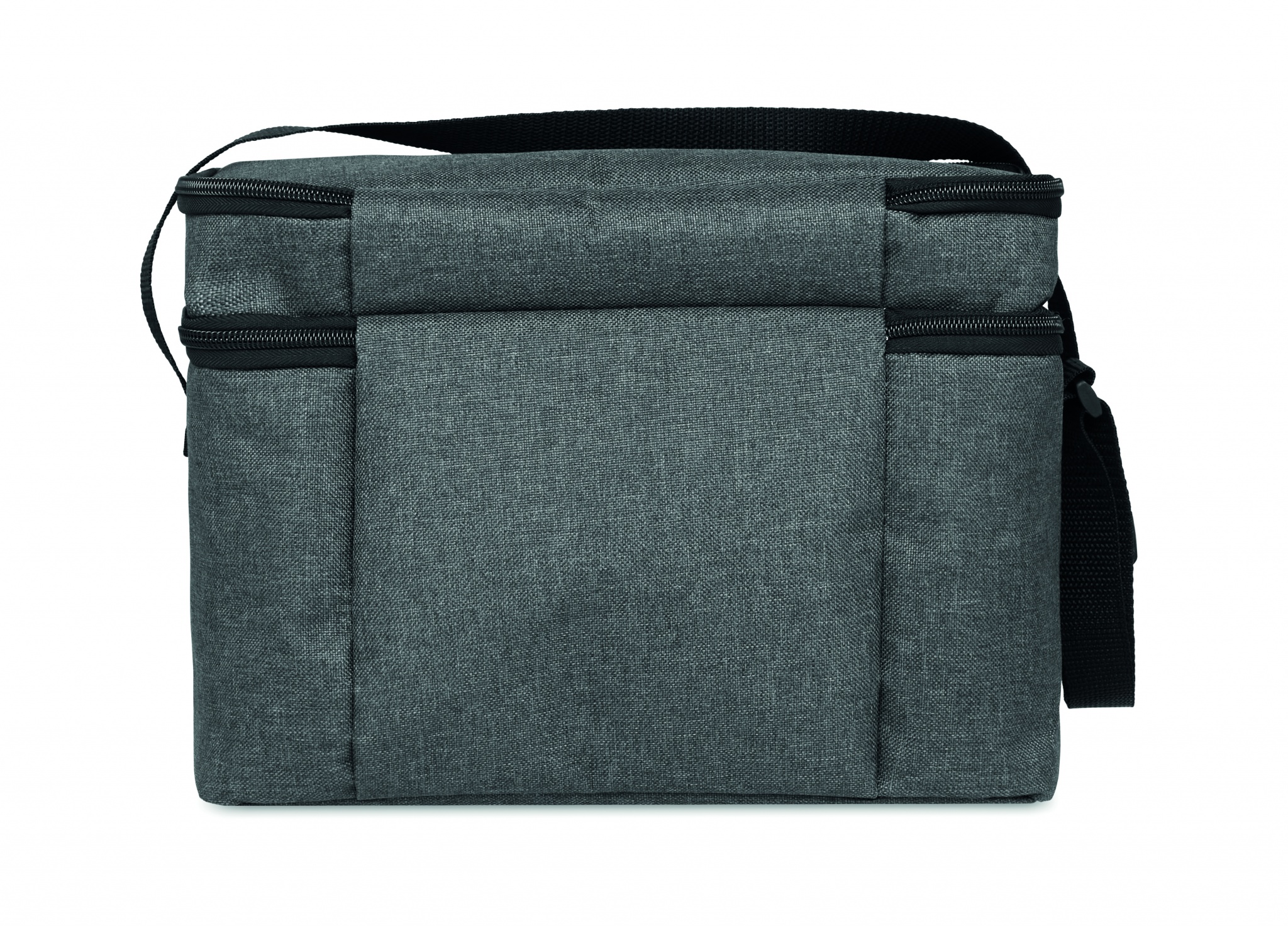 Двухцветная сумка холодильник из RPET 600D с 2 отделениями и подкладкой из PEVA. Регулируемый плечевой ремень и передний карман.