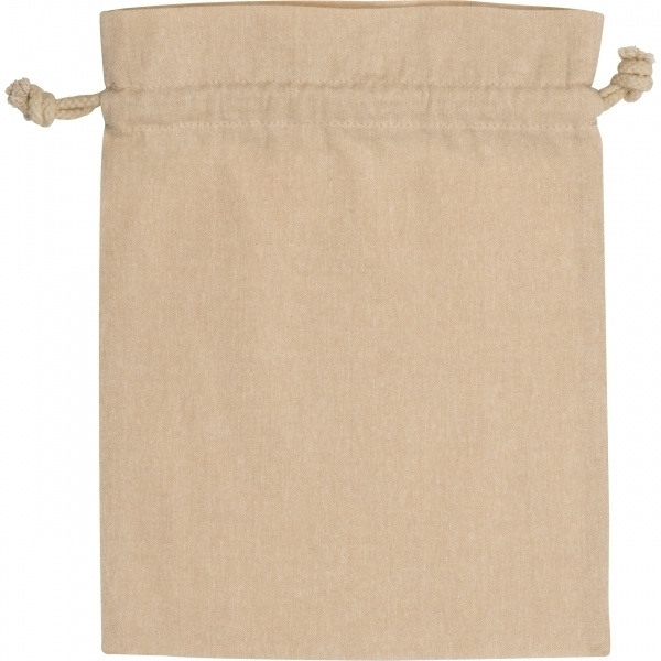 Мешок из переработанного, экологически чистого хлопка, сертифицированный Oeko-Tex® STANDARD 100, плотностью 110 г/м². Ваш логотип будет напечатан на одной стороне.