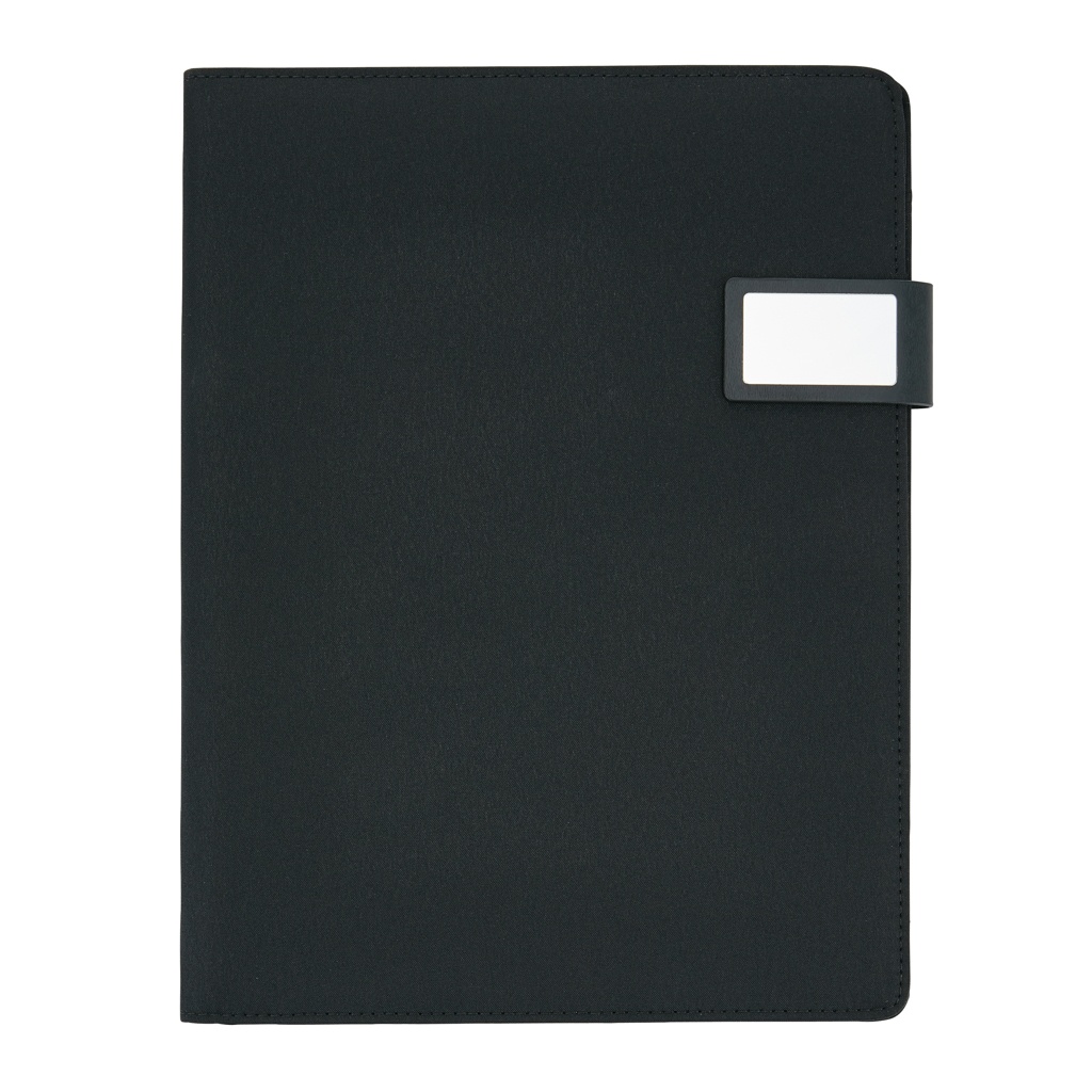 Портфель A4 Tech с роскошной магнитной металлической застежкой. Внутри: подставка для планшета/телефона, держатель для телефона с прозрачным окошком, через которое можно просматривать и получать доступ к устройству. Подходит для большинства распространенных телефонов. С карманом для документов, 2 держателями для карт и держателем для ручки. Включает переработанный блокнот A4.