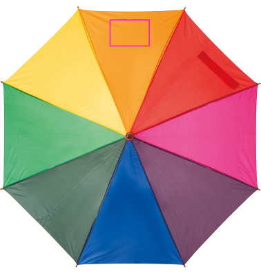 Привлекательный, многоцветный автоматический зонт с изогнутой деревянной ручкой. Мы печатаем ваш логотип на сегменте.